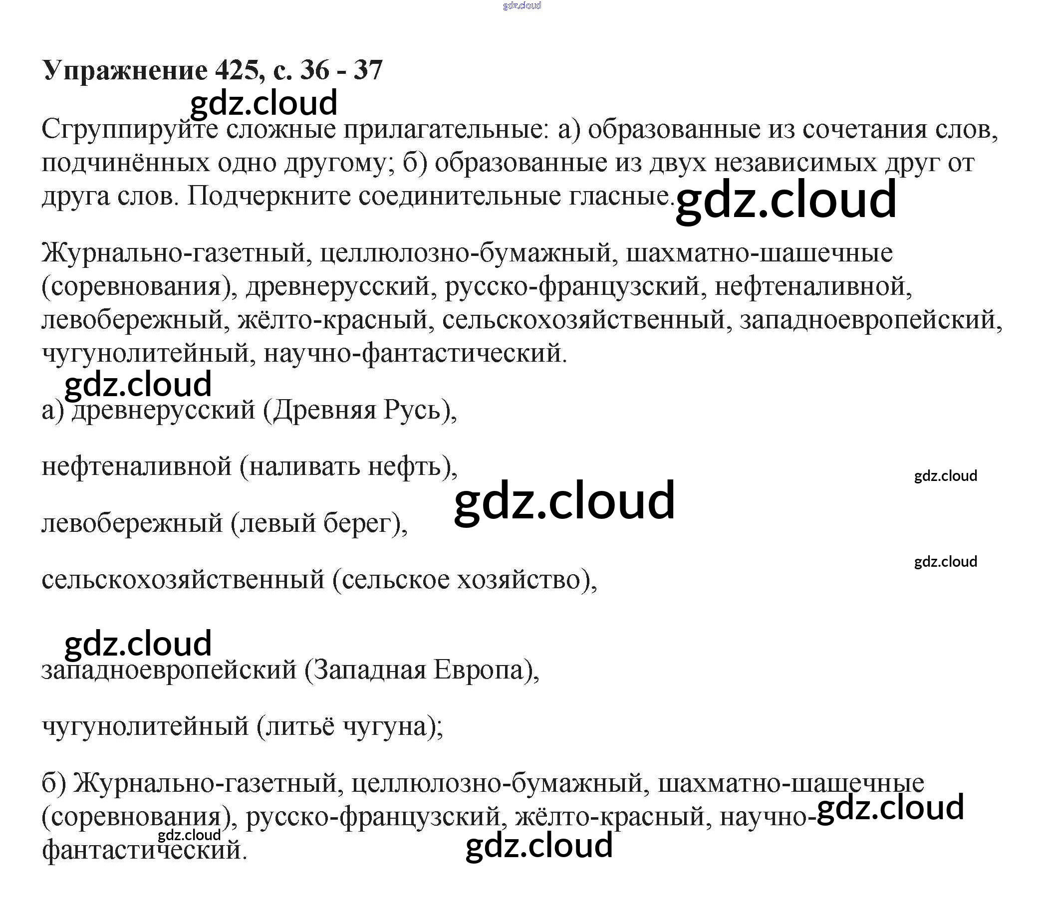 Ответ на задание 425 Учебник Русский язык за 6 (шестой) класс Баранов, Ладыженская, Тростенцова, Григорян, Кулибаба 2015, 2022 Часть 1, 2