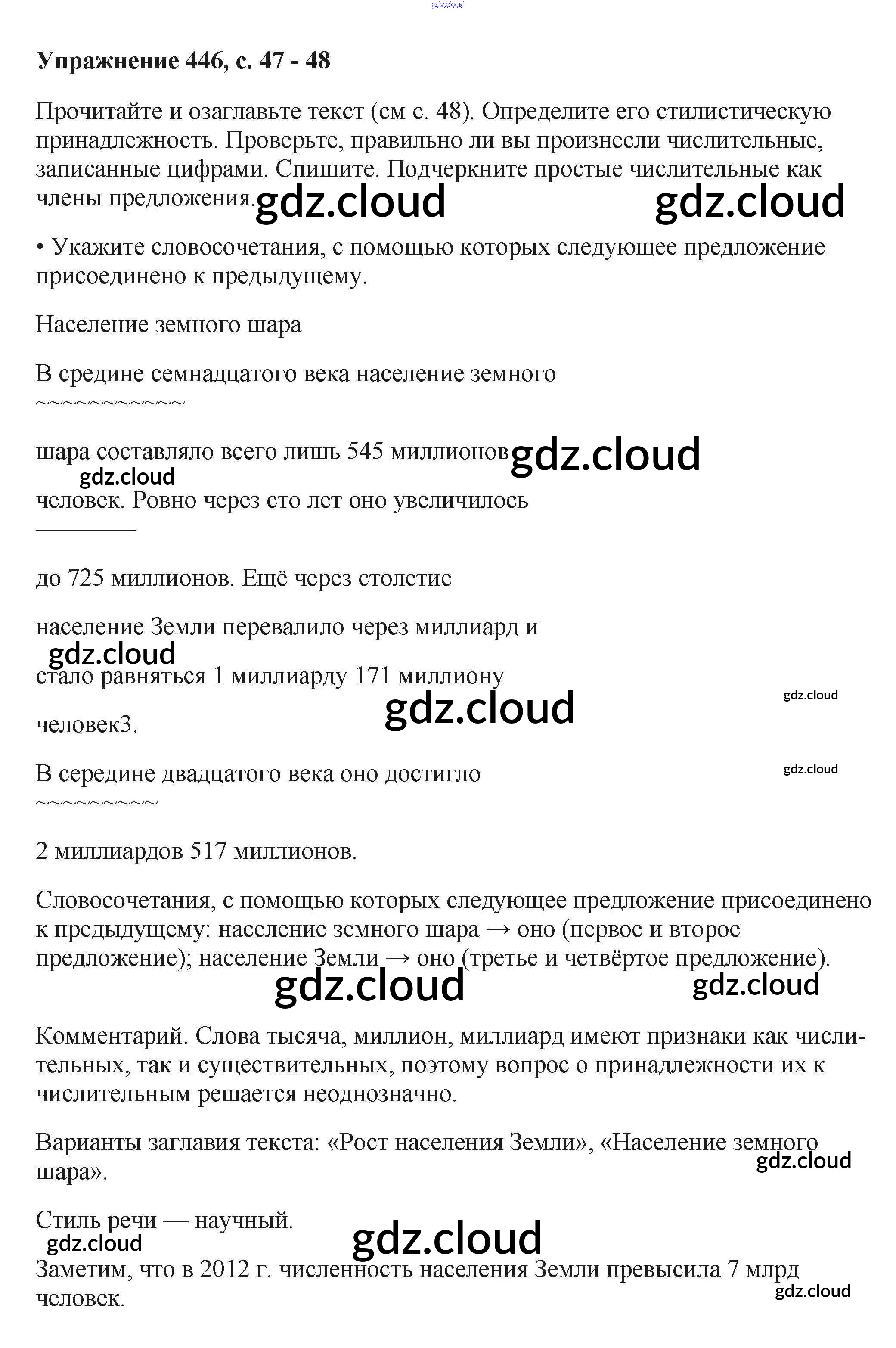 Ответ на задание 446 Учебник Русский язык за 6 (шестой) класс Баранов, Ладыженская, Тростенцова, Григорян, Кулибаба 2015, 2022 Часть 1, 2