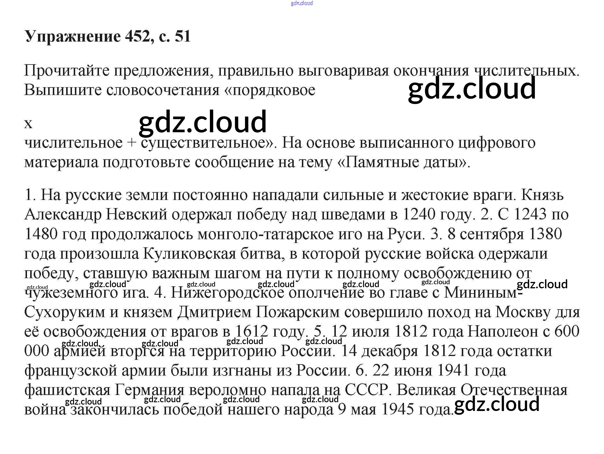 Ответ на задание 452 Учебник Русский язык за 6 (шестой) класс Баранов, Ладыженская, Тростенцова, Григорян, Кулибаба 2015, 2022 Часть 1, 2