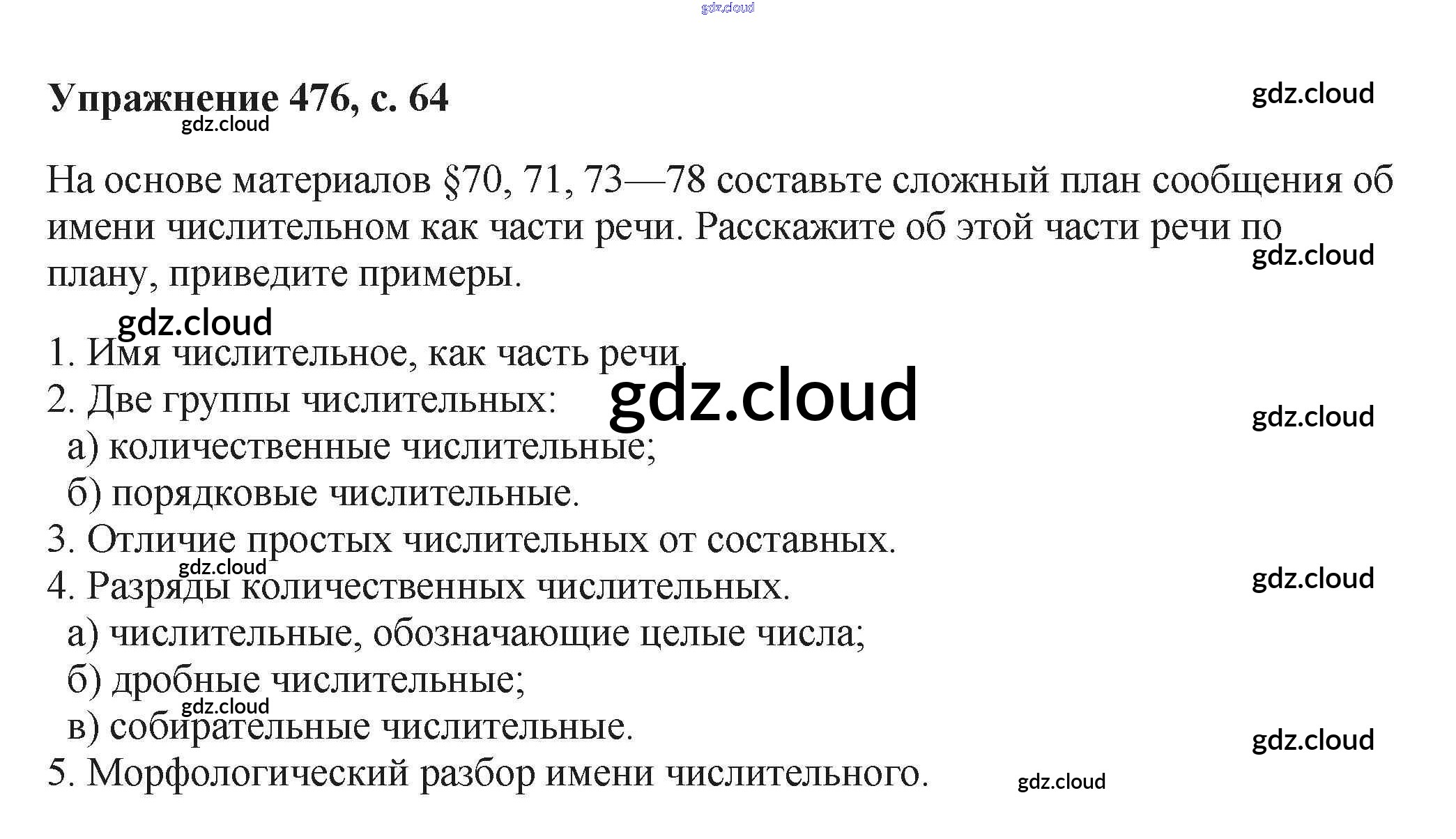 Ответ на задание 476 Учебник Русский язык за 6 (шестой) класс Баранов, Ладыженская, Тростенцова, Григорян, Кулибаба 2015, 2022 Часть 1, 2