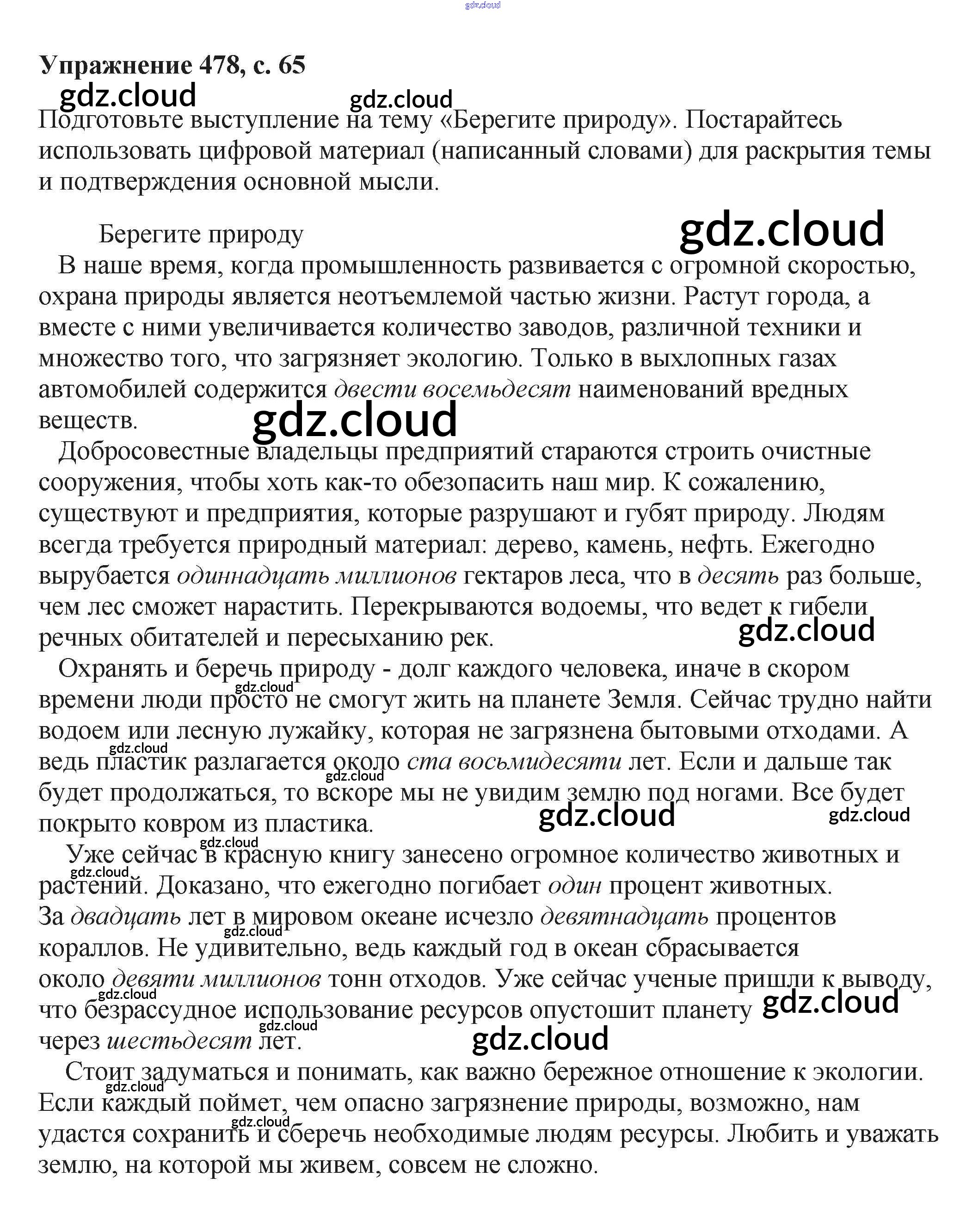 Ответ на задание 478 Учебник Русский язык за 6 (шестой) класс Баранов, Ладыженская, Тростенцова, Григорян, Кулибаба 2015, 2022 Часть 1, 2