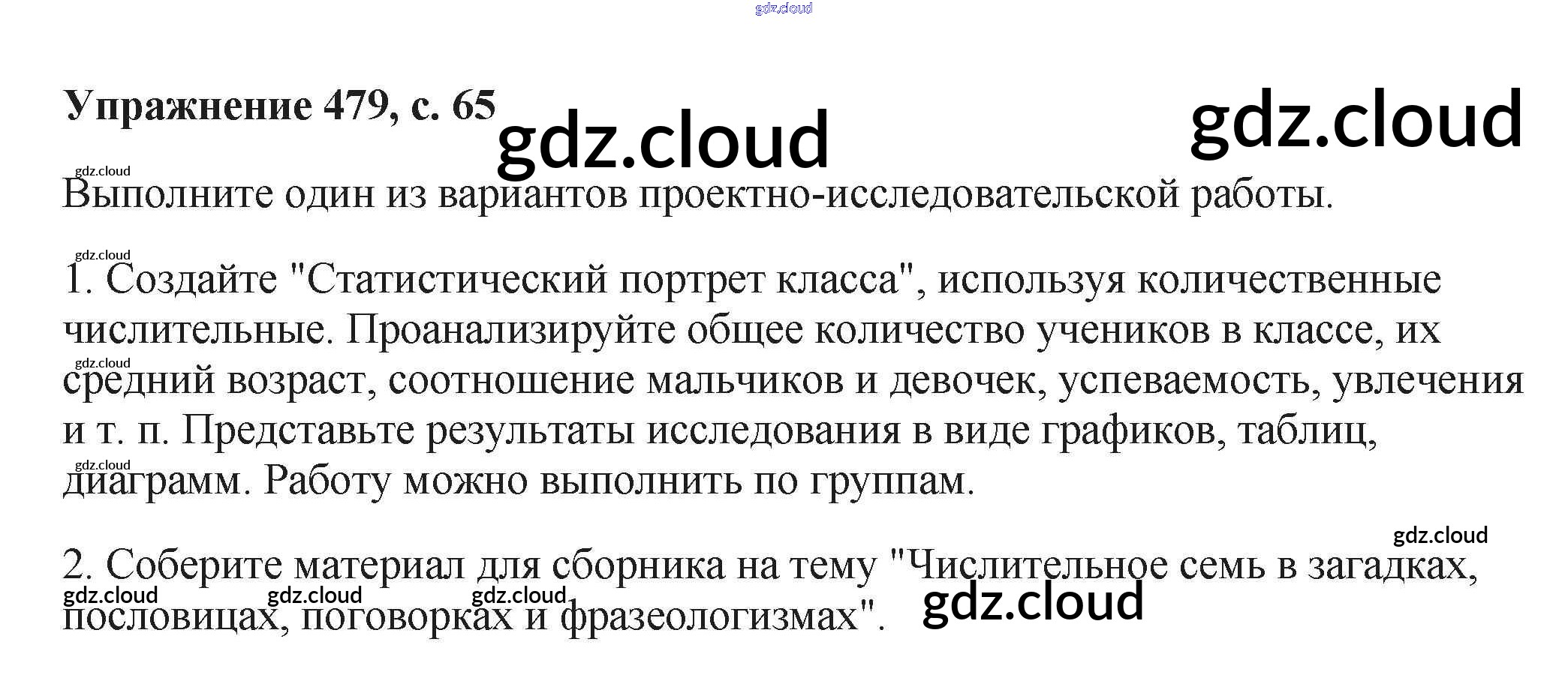 Ответ на задание 479 Учебник Русский язык за 6 (шестой) класс Баранов, Ладыженская, Тростенцова, Григорян, Кулибаба 2015, 2022 Часть 1, 2