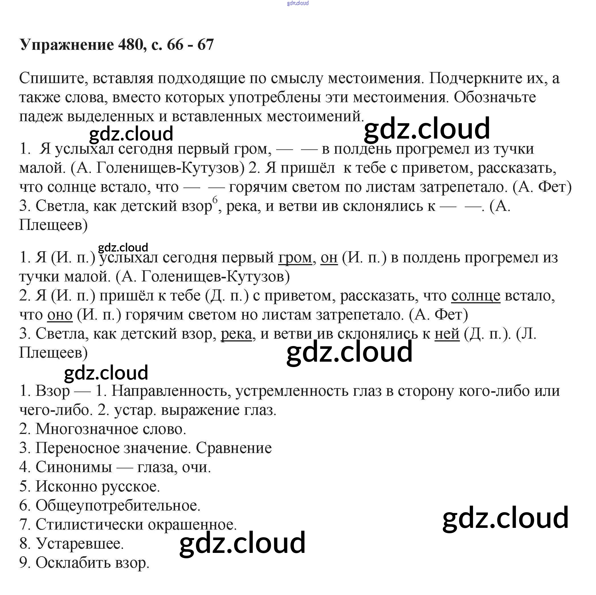 Ответ на задание 480 Учебник Русский язык за 6 (шестой) класс Баранов, Ладыженская, Тростенцова, Григорян, Кулибаба 2015, 2022 Часть 1, 2
