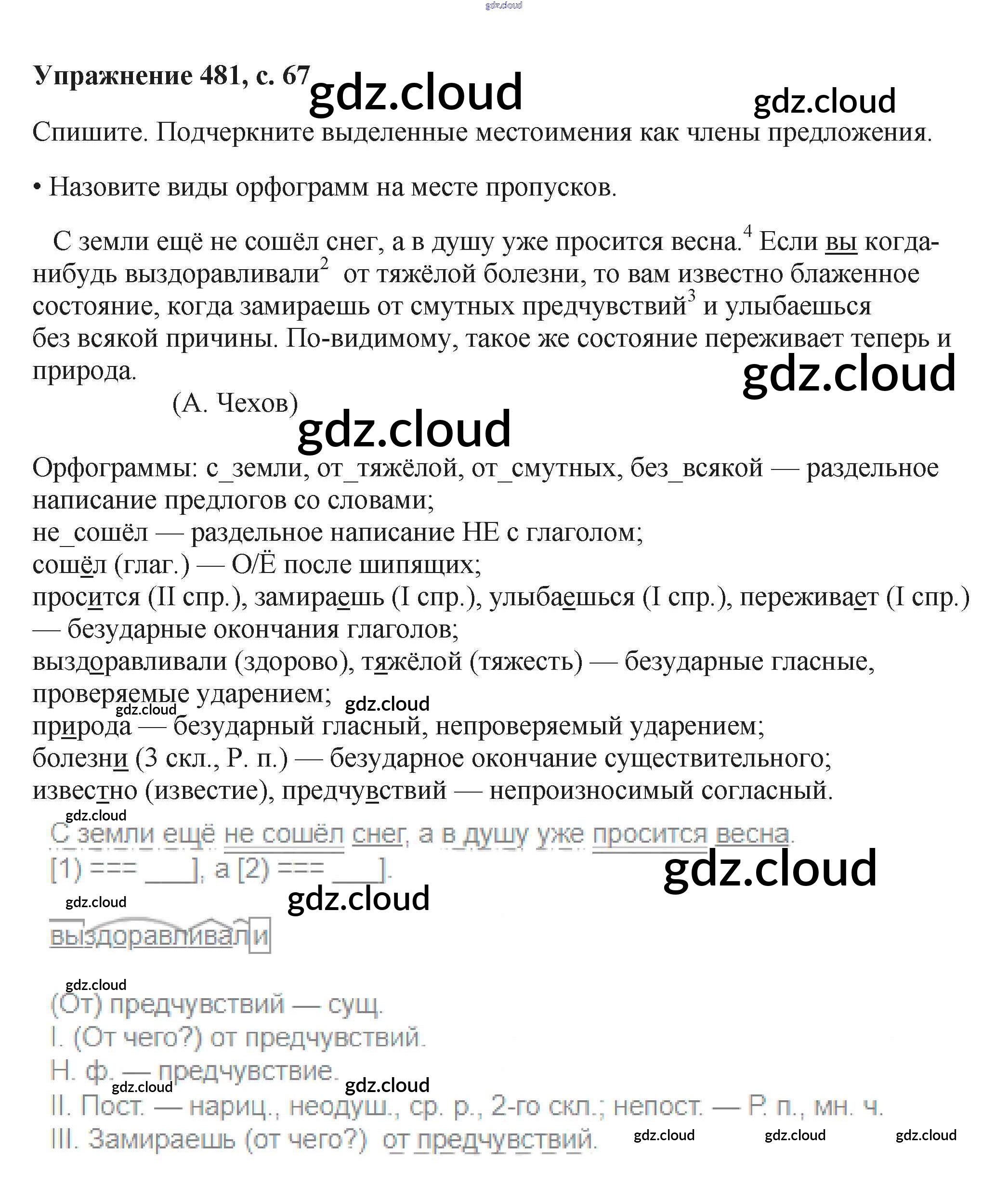 Ответ на задание 481 Учебник Русский язык за 6 (шестой) класс Баранов, Ладыженская, Тростенцова, Григорян, Кулибаба 2015, 2022 Часть 1, 2