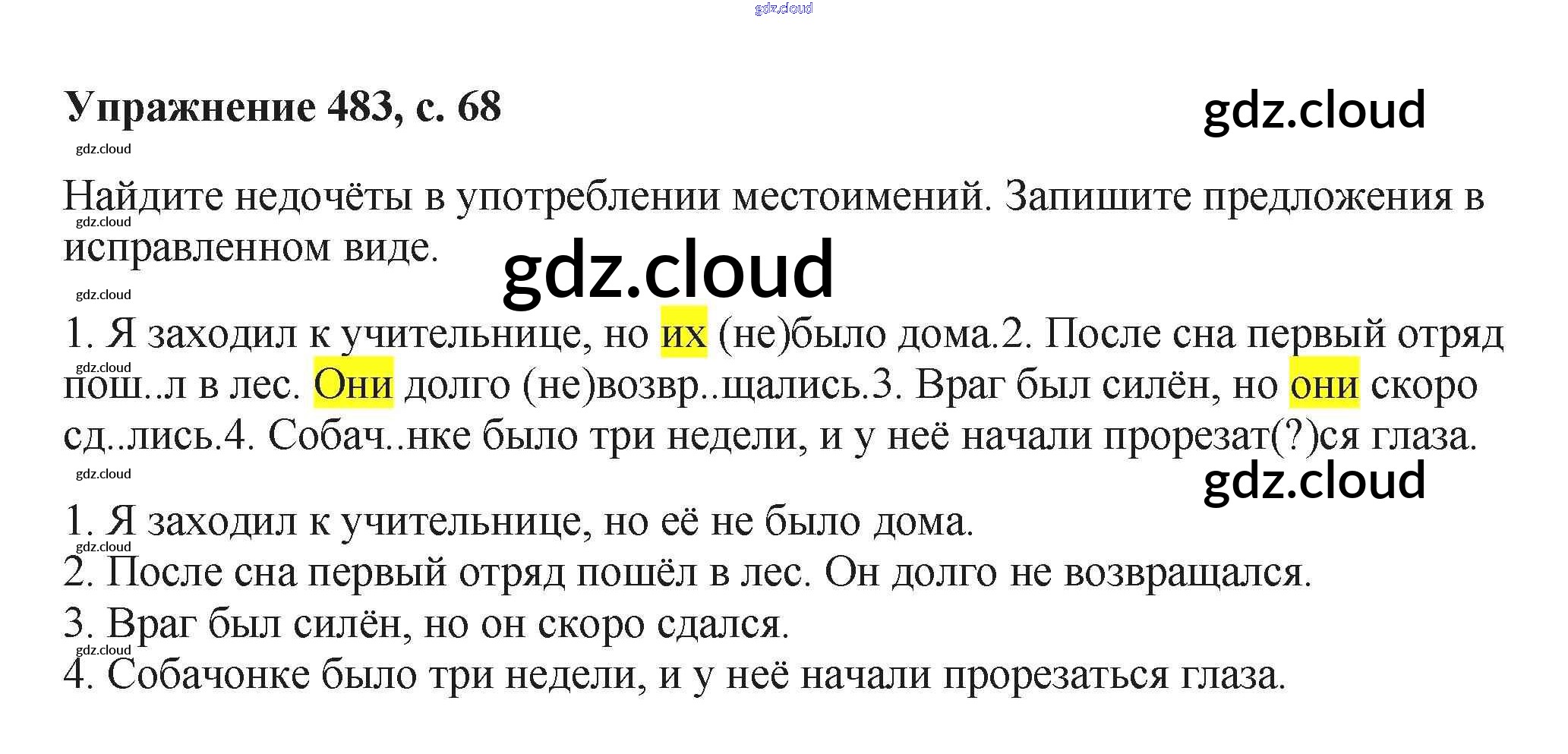 Ответ на задание 483 Учебник Русский язык за 6 (шестой) класс Баранов, Ладыженская, Тростенцова, Григорян, Кулибаба 2015, 2022 Часть 1, 2