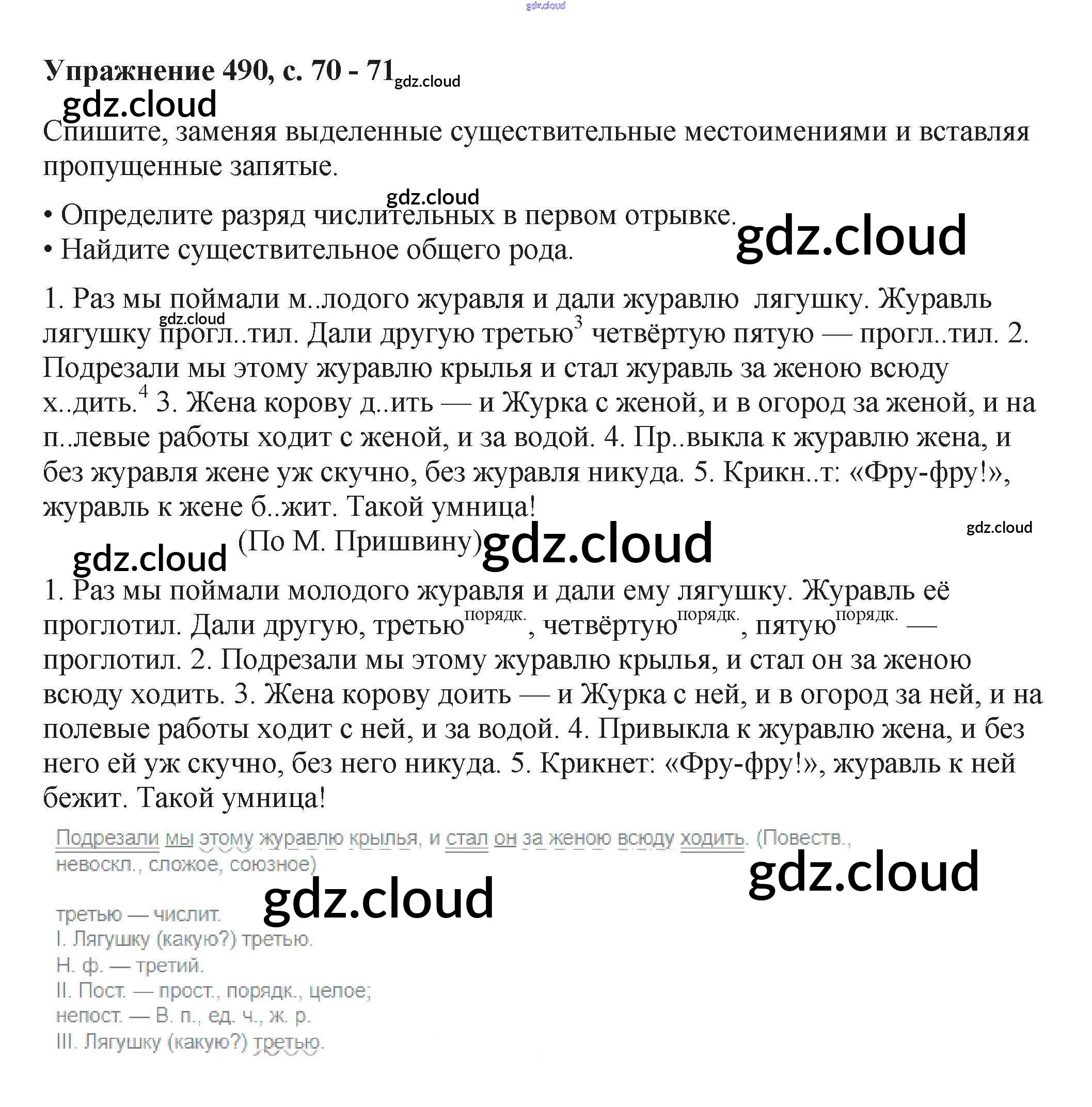 Ответ на задание 490 Учебник Русский язык за 6 (шестой) класс Баранов, Ладыженская, Тростенцова, Григорян, Кулибаба 2015, 2022 Часть 1, 2