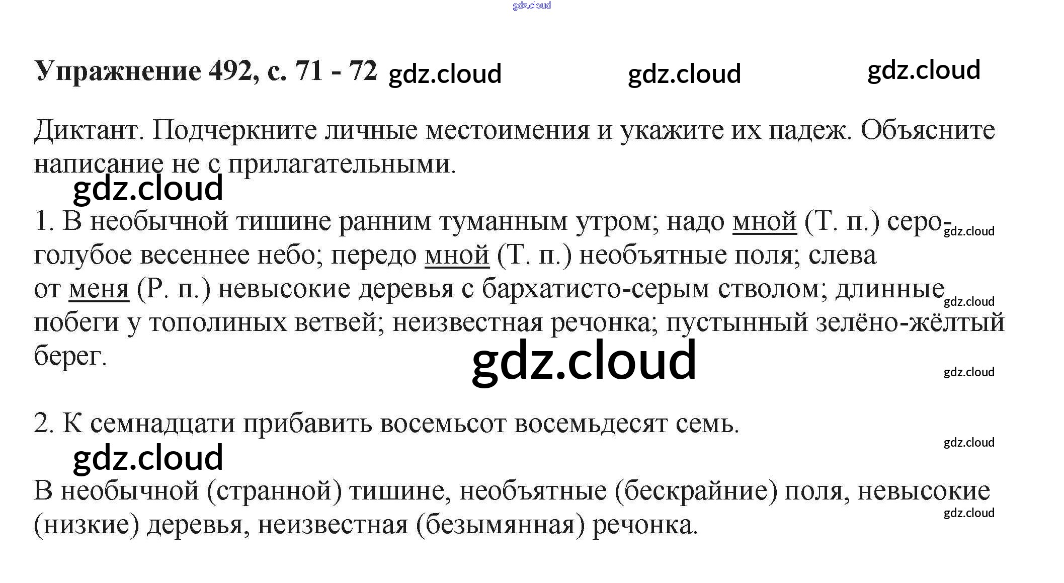 Ответ на задание 492 Учебник Русский язык за 6 (шестой) класс Баранов, Ладыженская, Тростенцова, Григорян, Кулибаба 2015, 2022 Часть 1, 2
