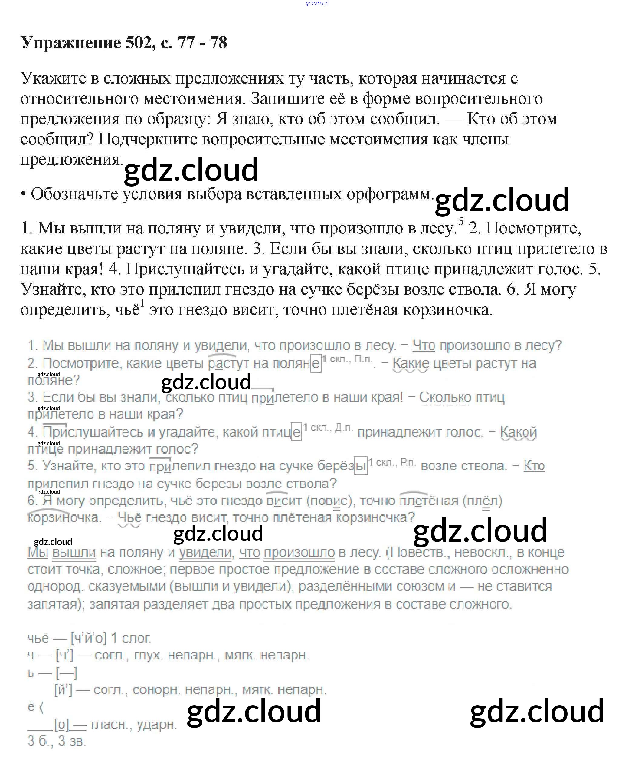 Ответ на задание 502 Учебник Русский язык за 6 (шестой) класс Баранов, Ладыженская, Тростенцова, Григорян, Кулибаба 2015, 2022 Часть 1, 2
