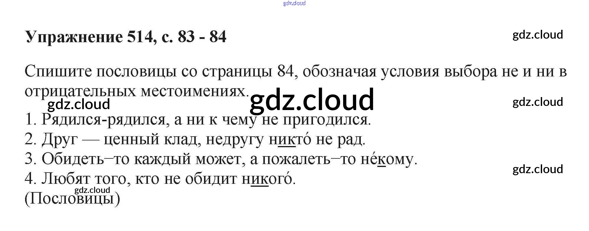 Ответ на задание 514 Учебник Русский язык за 6 (шестой) класс Баранов, Ладыженская, Тростенцова, Григорян, Кулибаба 2015, 2022 Часть 1, 2