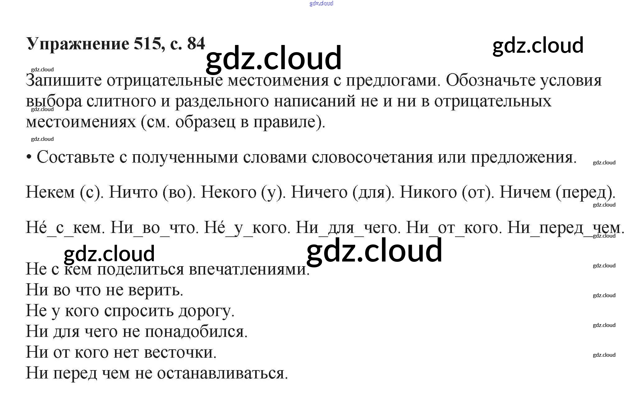 Ответ на задание 515 Учебник Русский язык за 6 (шестой) класс Баранов, Ладыженская, Тростенцова, Григорян, Кулибаба 2015, 2022 Часть 1, 2