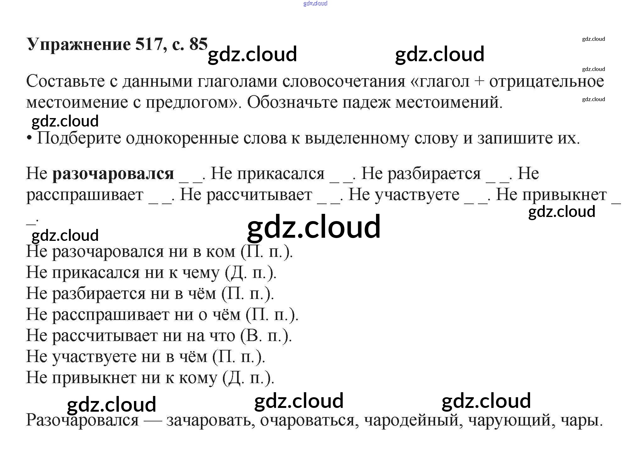 Ответ на задание 517 Учебник Русский язык за 6 (шестой) класс Баранов, Ладыженская, Тростенцова, Григорян, Кулибаба 2015, 2022 Часть 1, 2