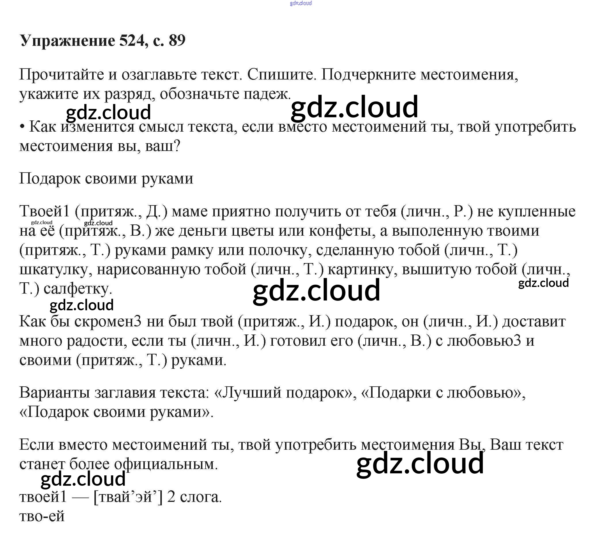 Ответ на задание 524 Учебник Русский язык за 6 (шестой) класс Баранов, Ладыженская, Тростенцова, Григорян, Кулибаба 2015, 2022 Часть 1, 2