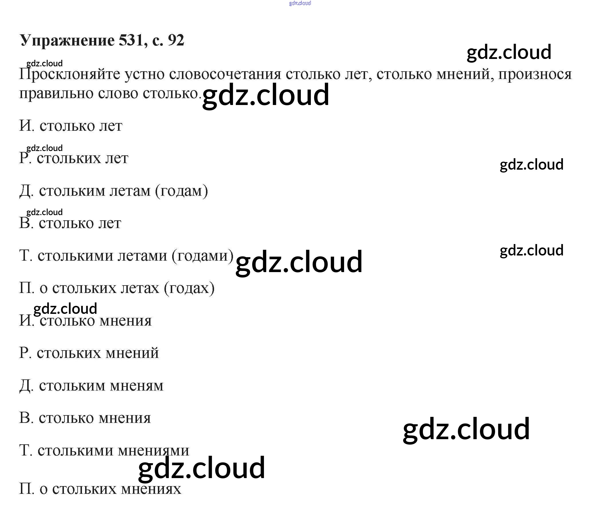 Ответ на задание 531 Учебник Русский язык за 6 (шестой) класс Баранов, Ладыженская, Тростенцова, Григорян, Кулибаба 2015, 2022 Часть 1, 2