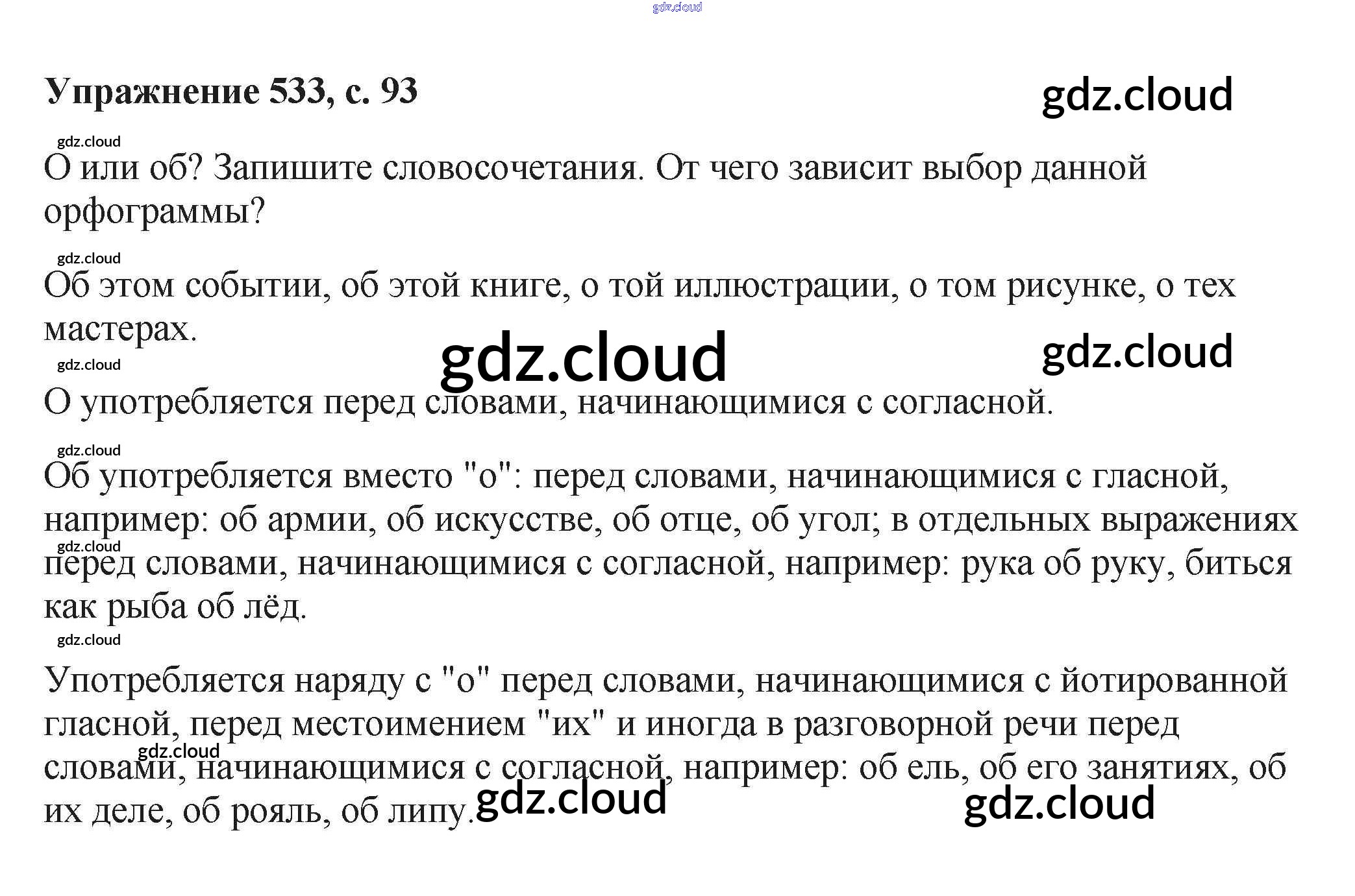 Ответ на задание 533 Учебник Русский язык за 6 (шестой) класс Баранов, Ладыженская, Тростенцова, Григорян, Кулибаба 2015, 2022 Часть 1, 2