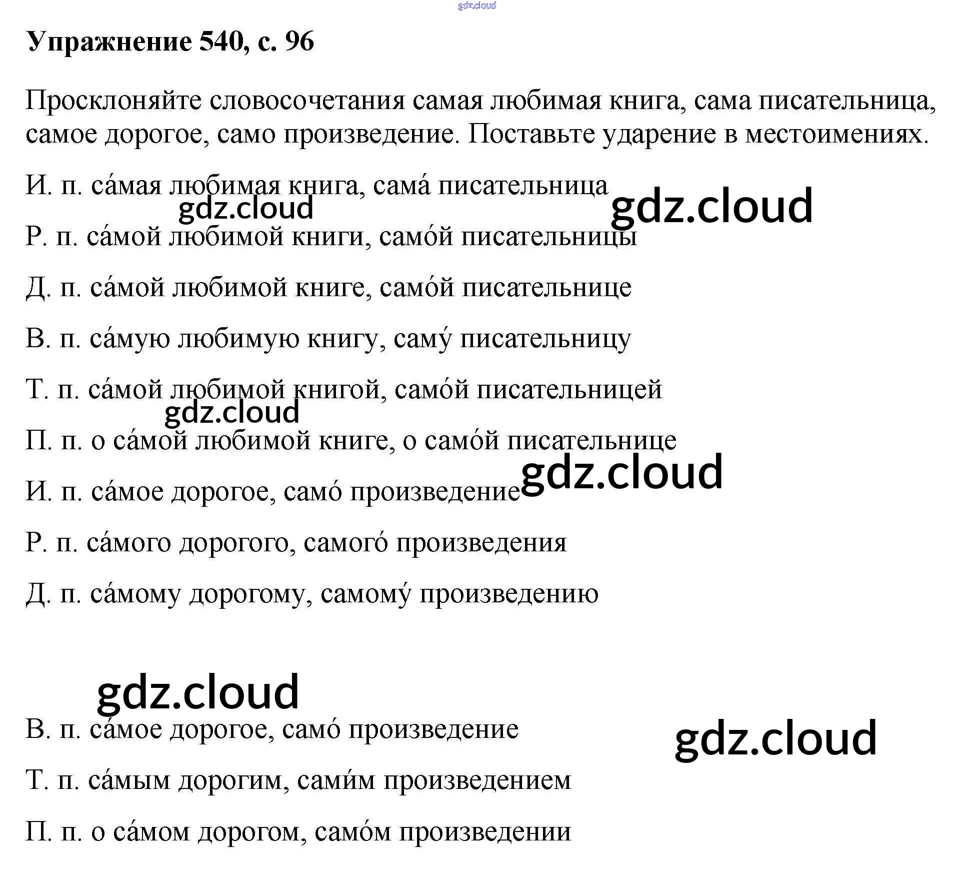 Ответ на задание 540 Учебник Русский язык за 6 (шестой) класс Баранов, Ладыженская, Тростенцова, Григорян, Кулибаба 2015, 2022 Часть 1, 2