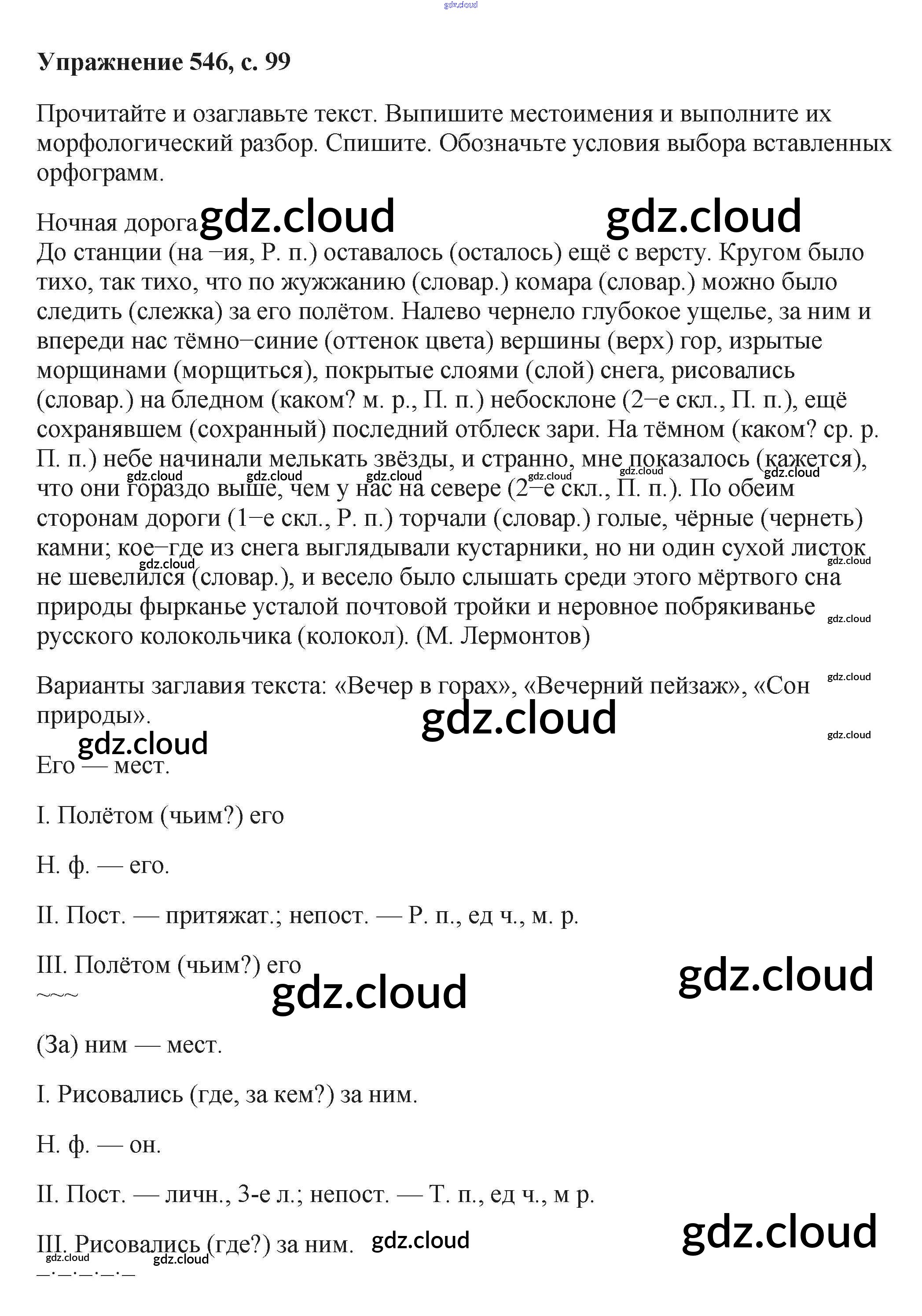 Ответ на задание 546 Учебник Русский язык за 6 (шестой) класс Баранов, Ладыженская, Тростенцова, Григорян, Кулибаба 2015, 2022 Часть 1, 2