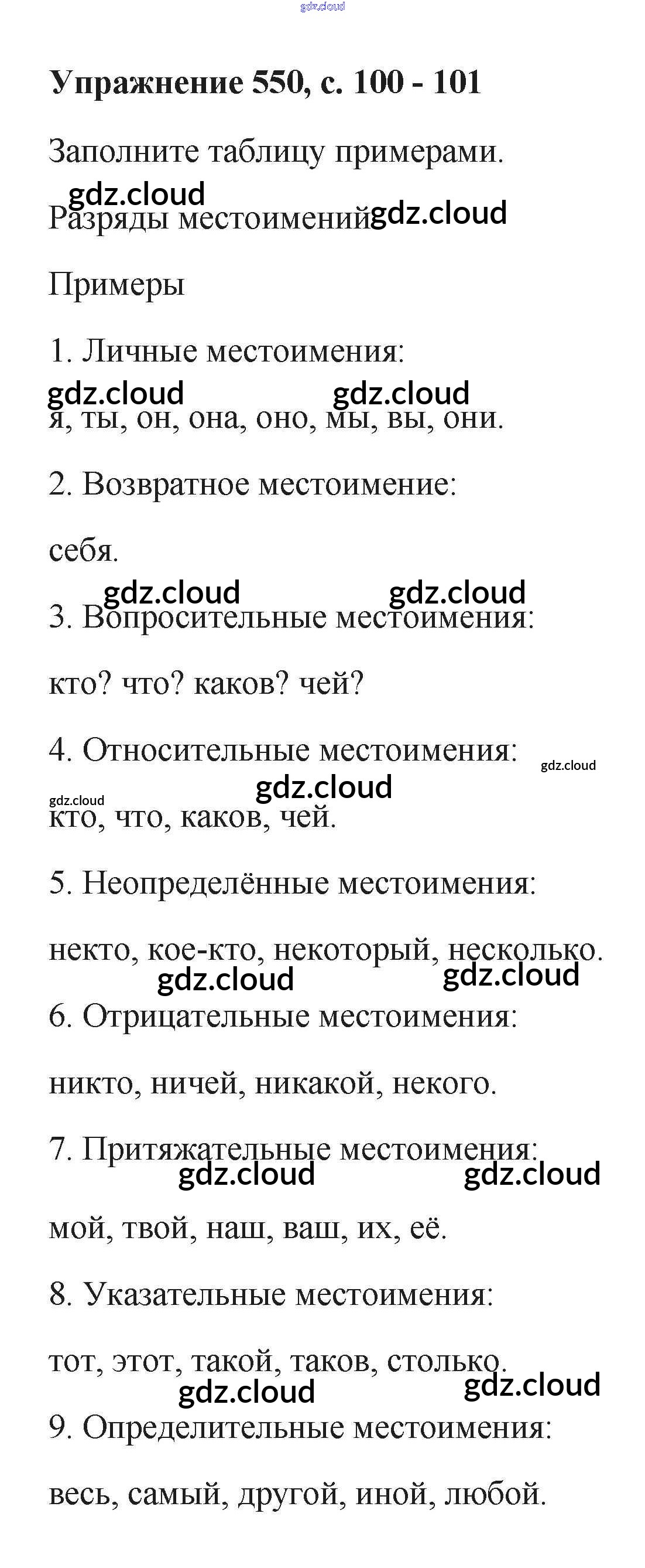 Ответ на задание 550 Учебник Русский язык за 6 (шестой) класс Баранов, Ладыженская, Тростенцова, Григорян, Кулибаба 2015, 2022 Часть 1, 2