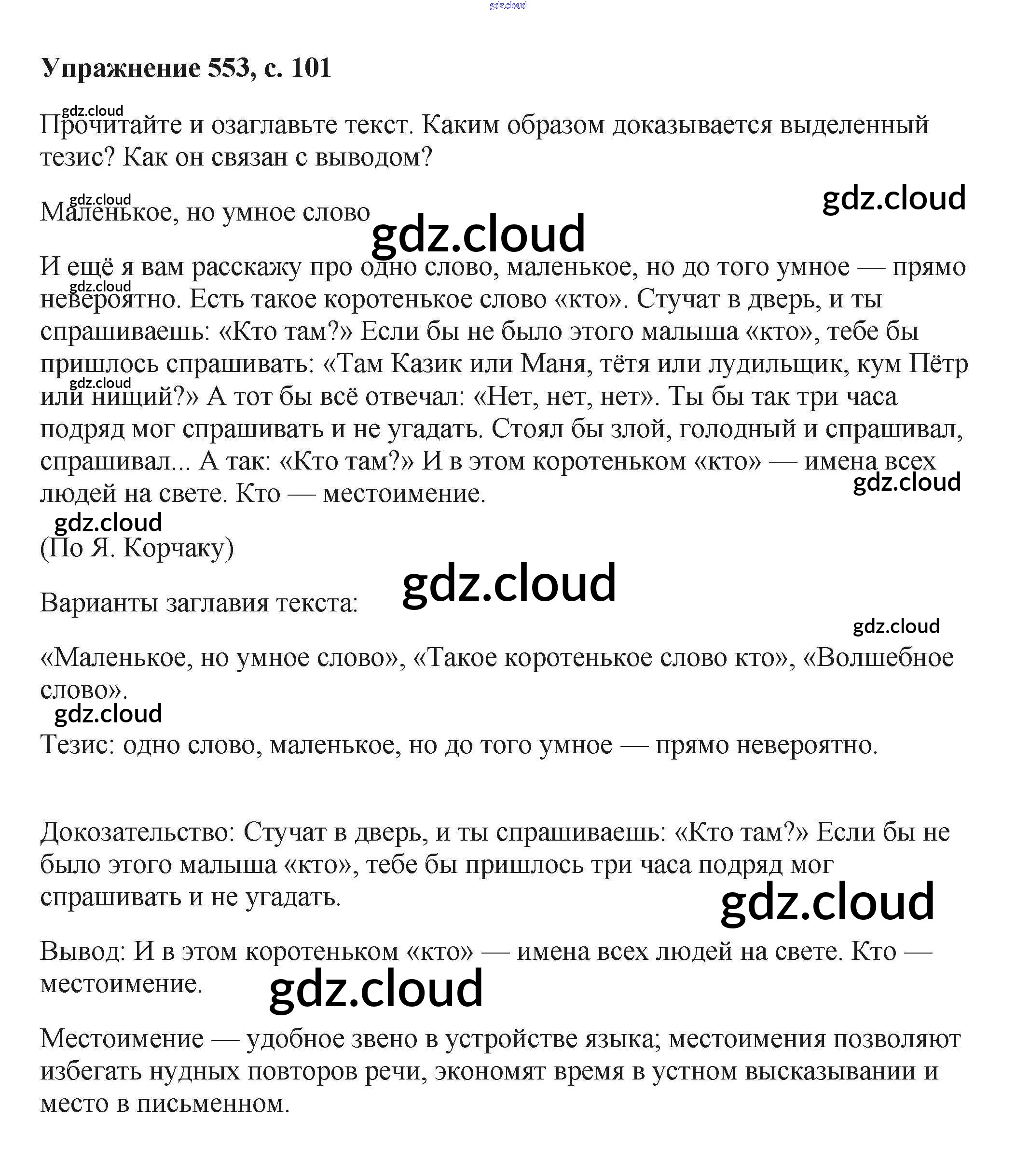 Ответ на задание 553 Учебник Русский язык за 6 (шестой) класс Баранов, Ладыженская, Тростенцова, Григорян, Кулибаба 2015, 2022 Часть 1, 2