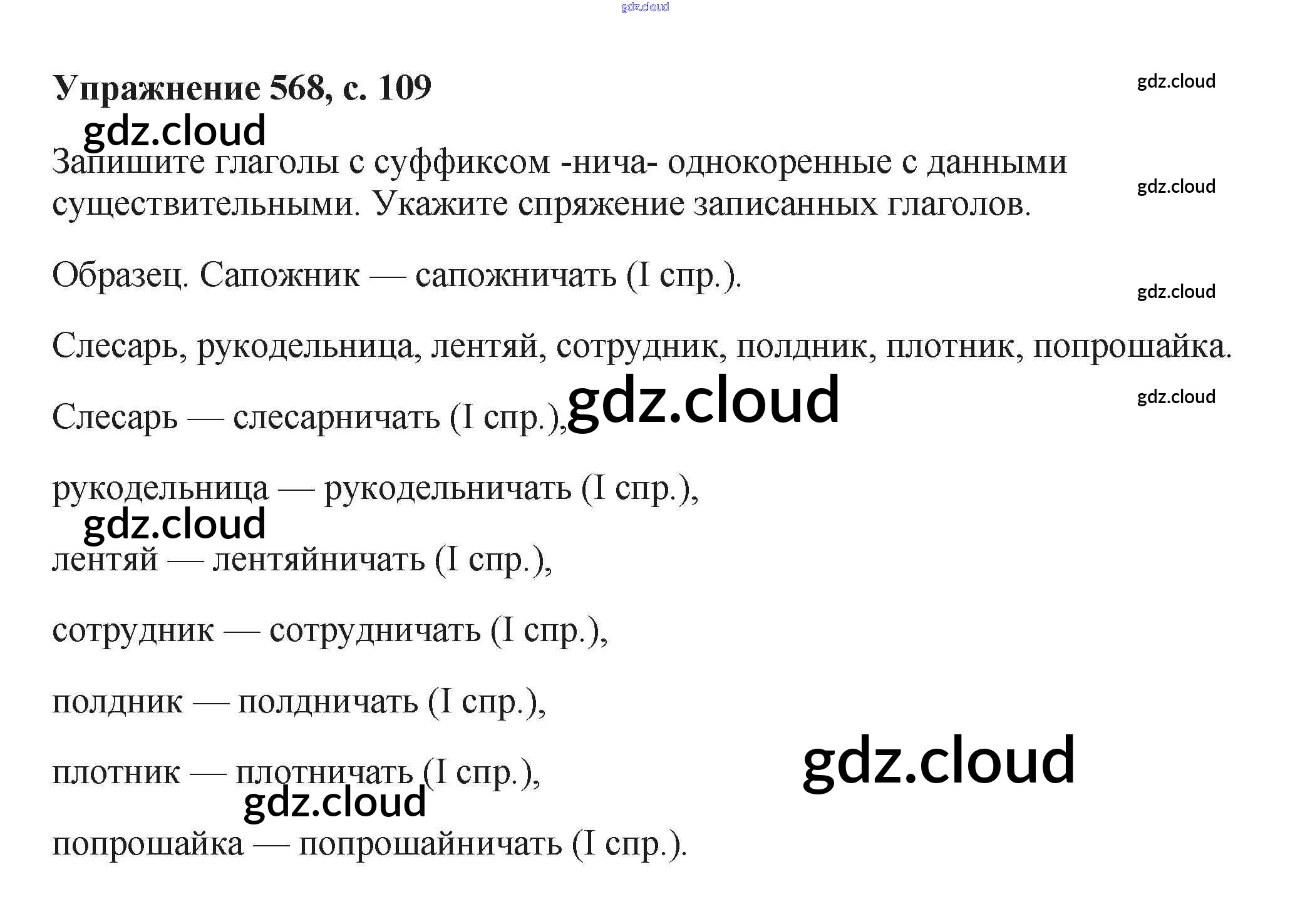 Ответ на задание 568 Учебник Русский язык за 6 (шестой) класс Баранов, Ладыженская, Тростенцова, Григорян, Кулибаба 2015, 2022 Часть 1, 2