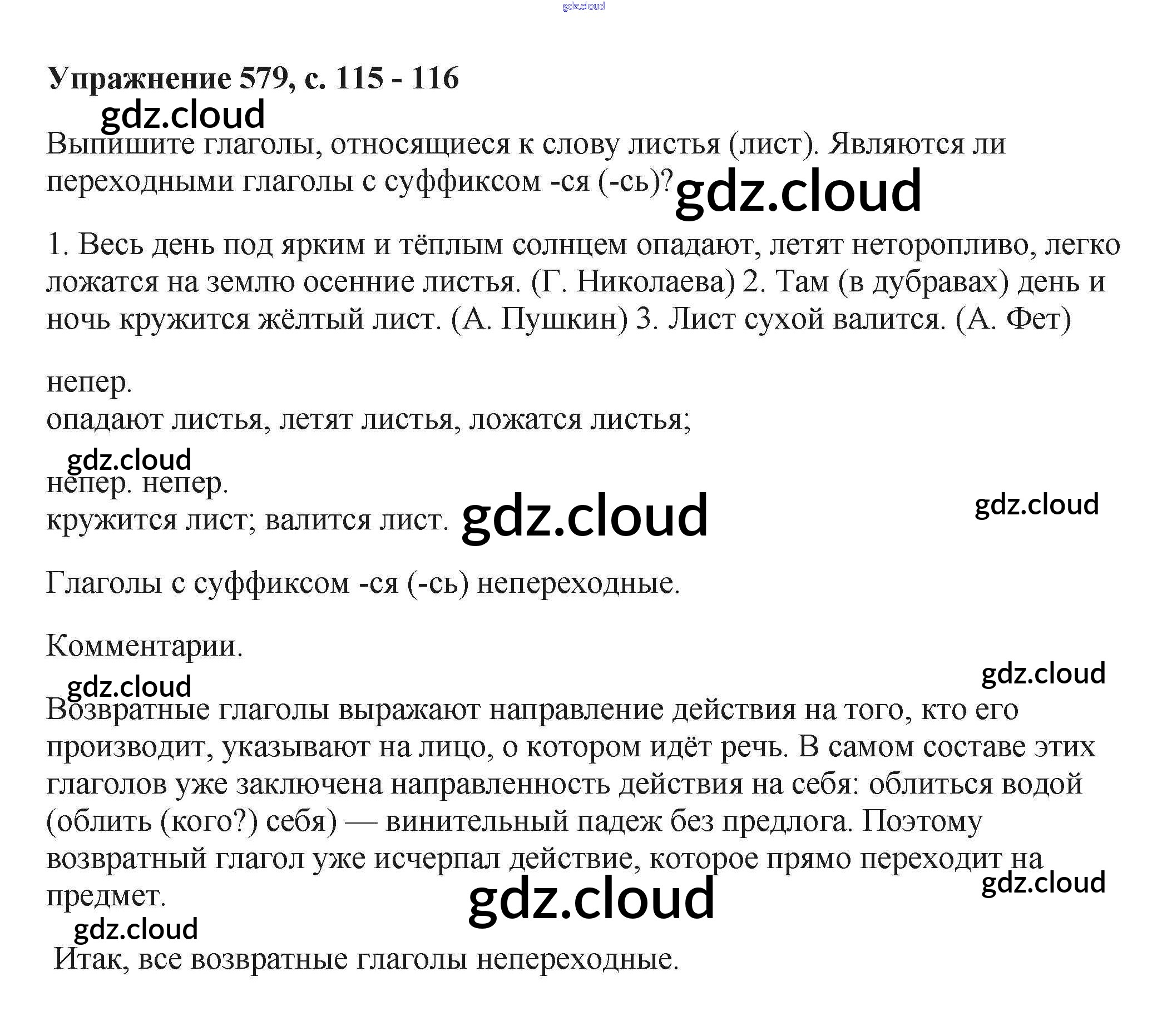 Ответ на задание 579 Учебник Русский язык за 6 (шестой) класс Баранов, Ладыженская, Тростенцова, Григорян, Кулибаба 2015, 2022 Часть 1, 2