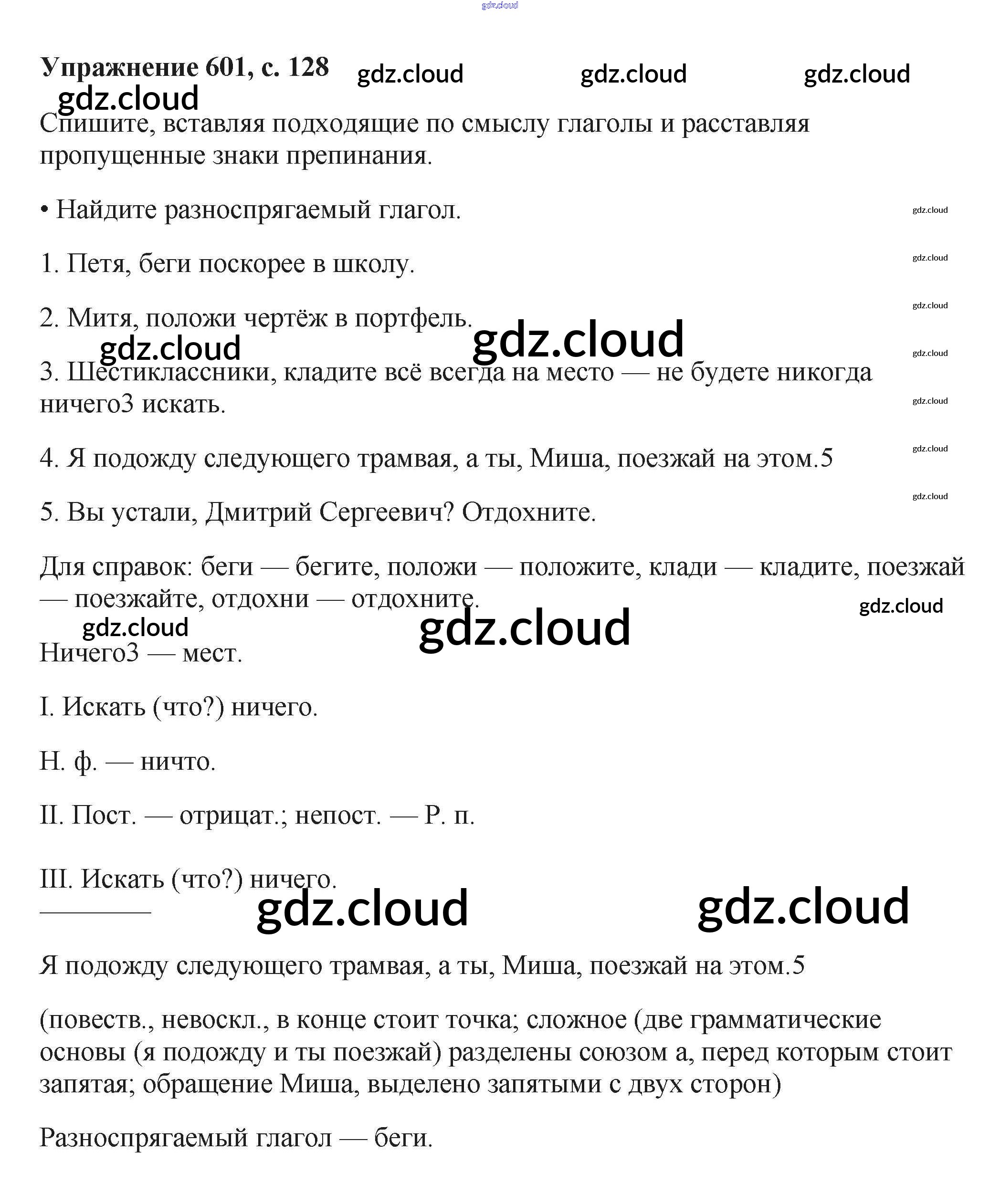 Ответ на задание 601 Учебник Русский язык за 6 (шестой) класс Баранов, Ладыженская, Тростенцова, Григорян, Кулибаба 2015, 2022 Часть 1, 2