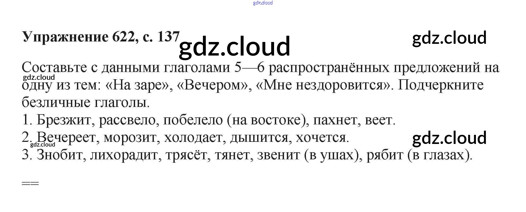 Ответ на задание 622 Учебник Русский язык за 6 (шестой) класс Баранов, Ладыженская, Тростенцова, Григорян, Кулибаба 2015, 2022 Часть 1, 2