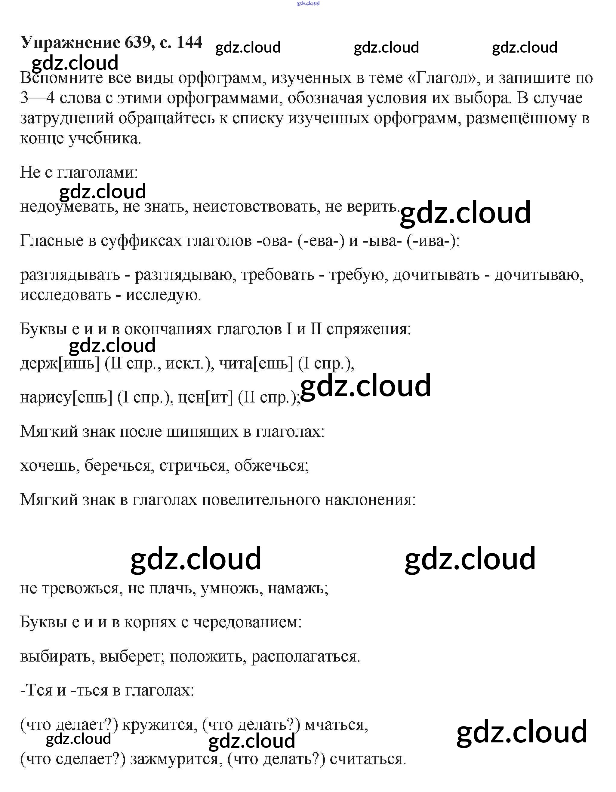 Ответ на задание 639 Учебник Русский язык за 6 (шестой) класс Баранов, Ладыженская, Тростенцова, Григорян, Кулибаба 2015, 2022 Часть 1, 2