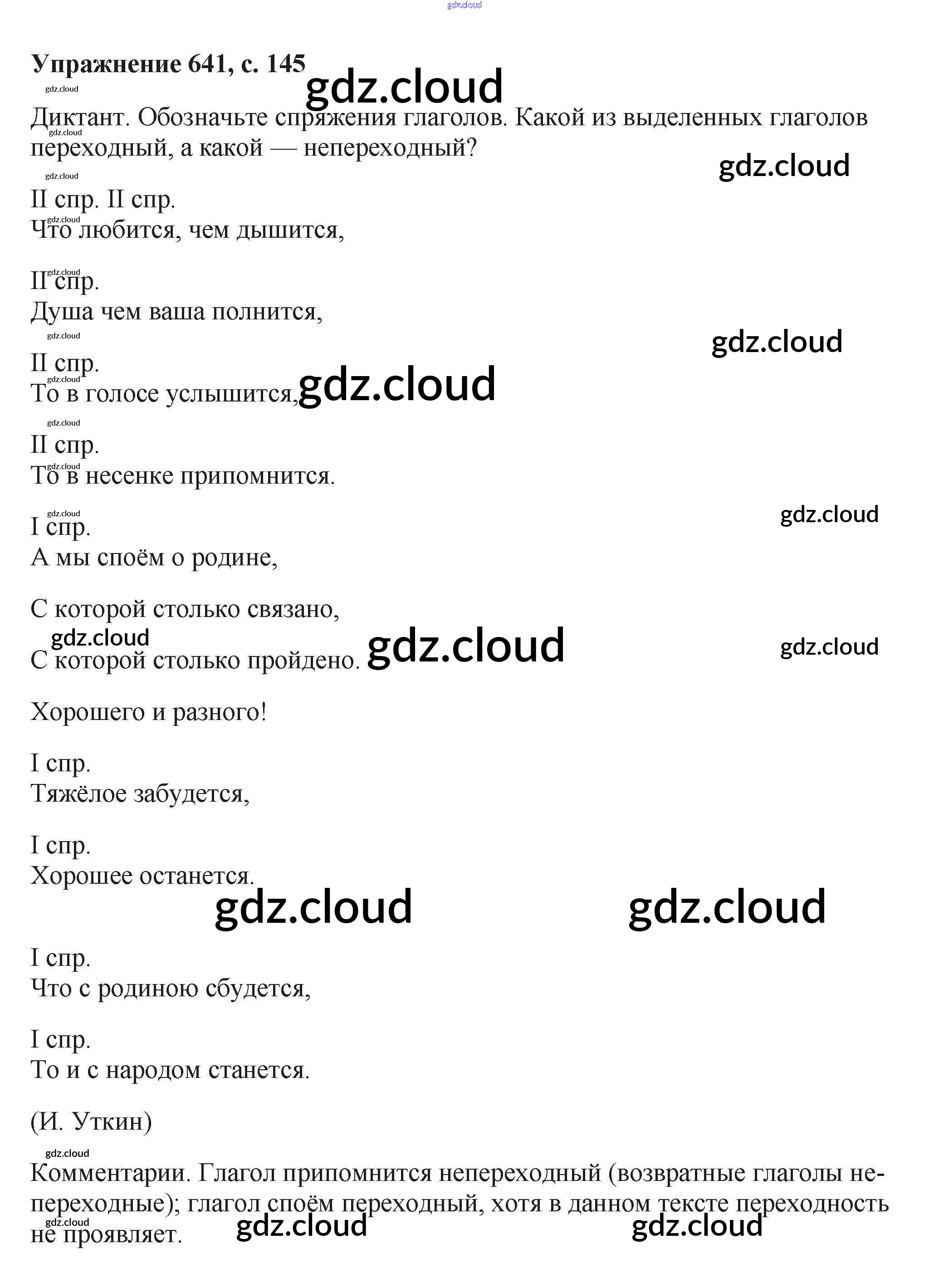 Ответ на задание 641 Учебник Русский язык за 6 (шестой) класс Баранов, Ладыженская, Тростенцова, Григорян, Кулибаба 2015, 2022 Часть 1, 2