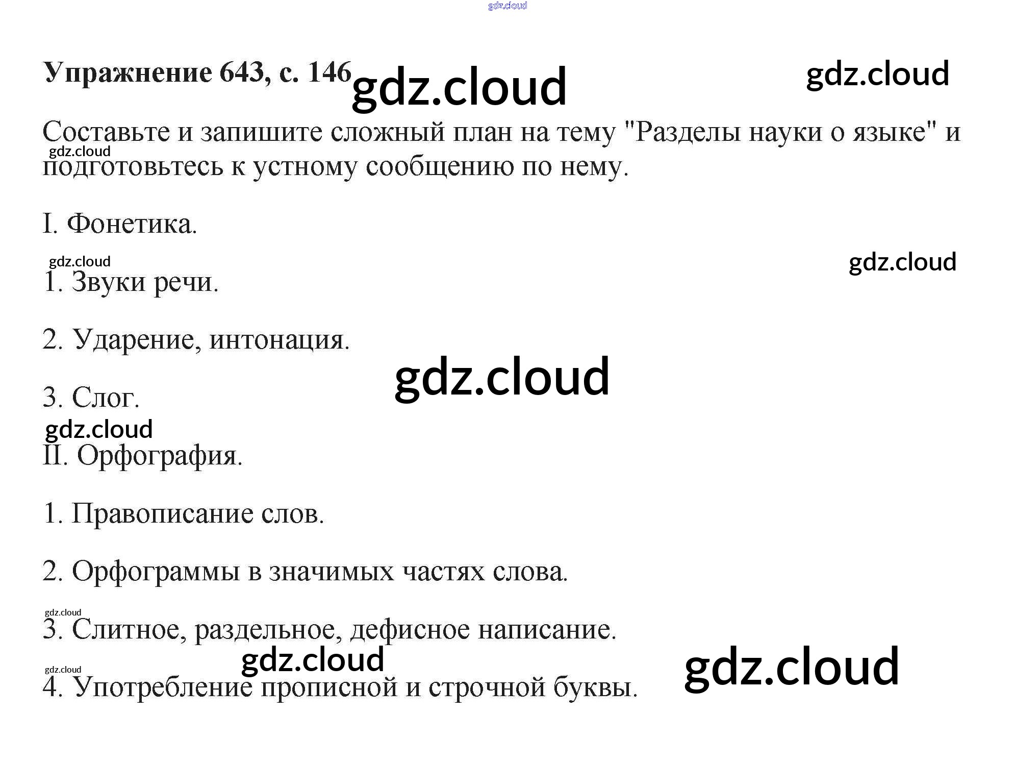 Ответ на задание 643 Учебник Русский язык за 6 (шестой) класс Баранов, Ладыженская, Тростенцова, Григорян, Кулибаба 2015, 2022 Часть 1, 2