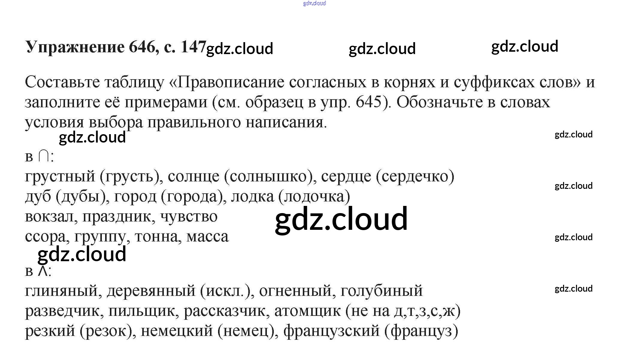 Ответ на задание 646 Учебник Русский язык за 6 (шестой) класс Баранов, Ладыженская, Тростенцова, Григорян, Кулибаба 2015, 2022 Часть 1, 2