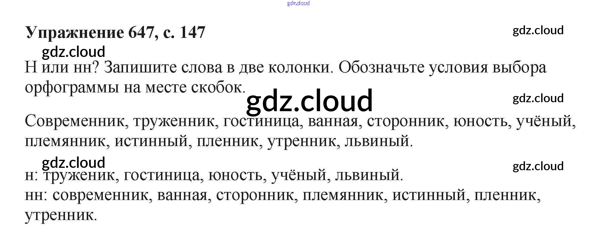 Ответ на задание 647 Учебник Русский язык за 6 (шестой) класс Баранов, Ладыженская, Тростенцова, Григорян, Кулибаба 2015, 2022 Часть 1, 2