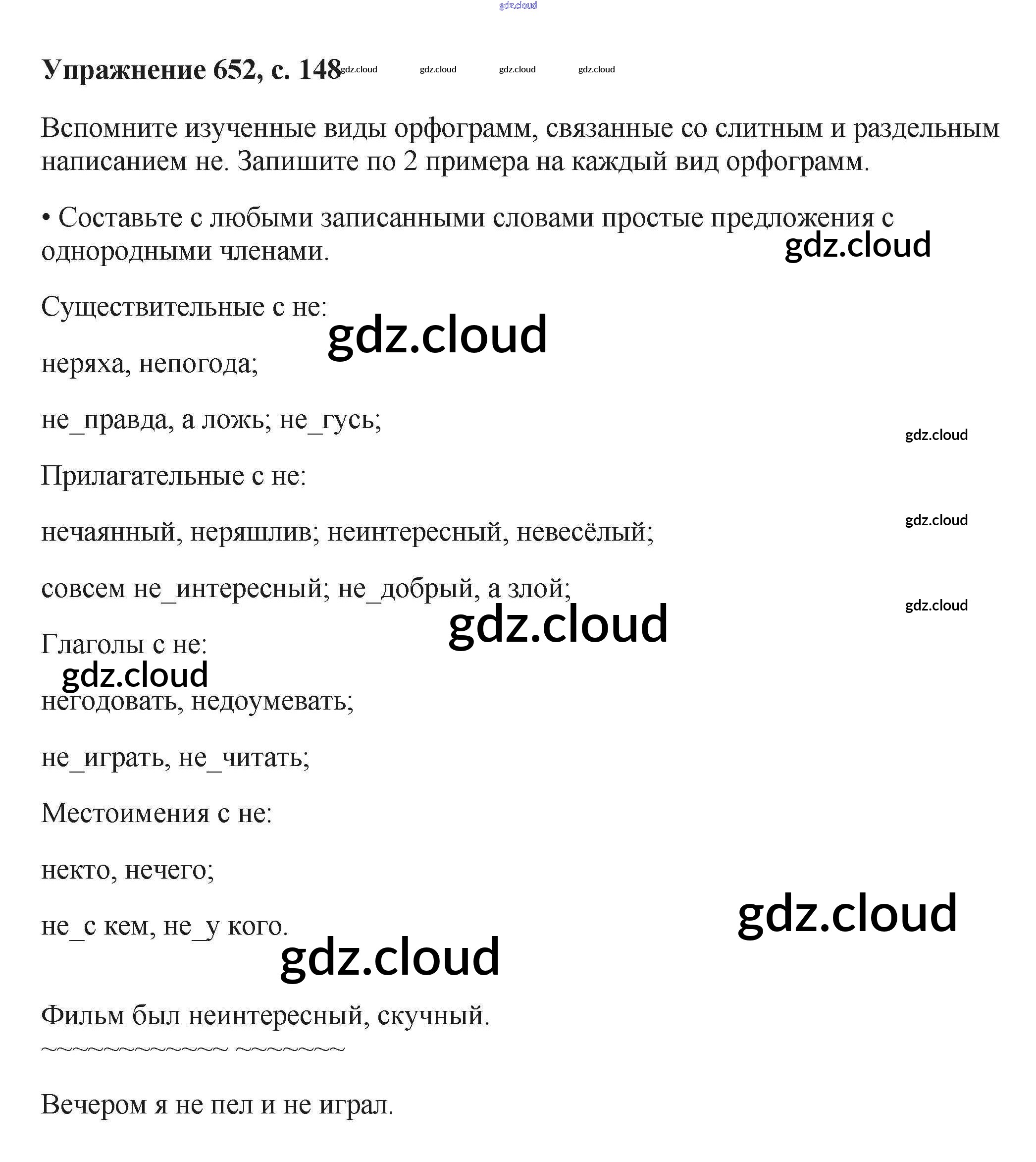 Ответ на задание 652 Учебник Русский язык за 6 (шестой) класс Баранов, Ладыженская, Тростенцова, Григорян, Кулибаба 2015, 2022 Часть 1, 2