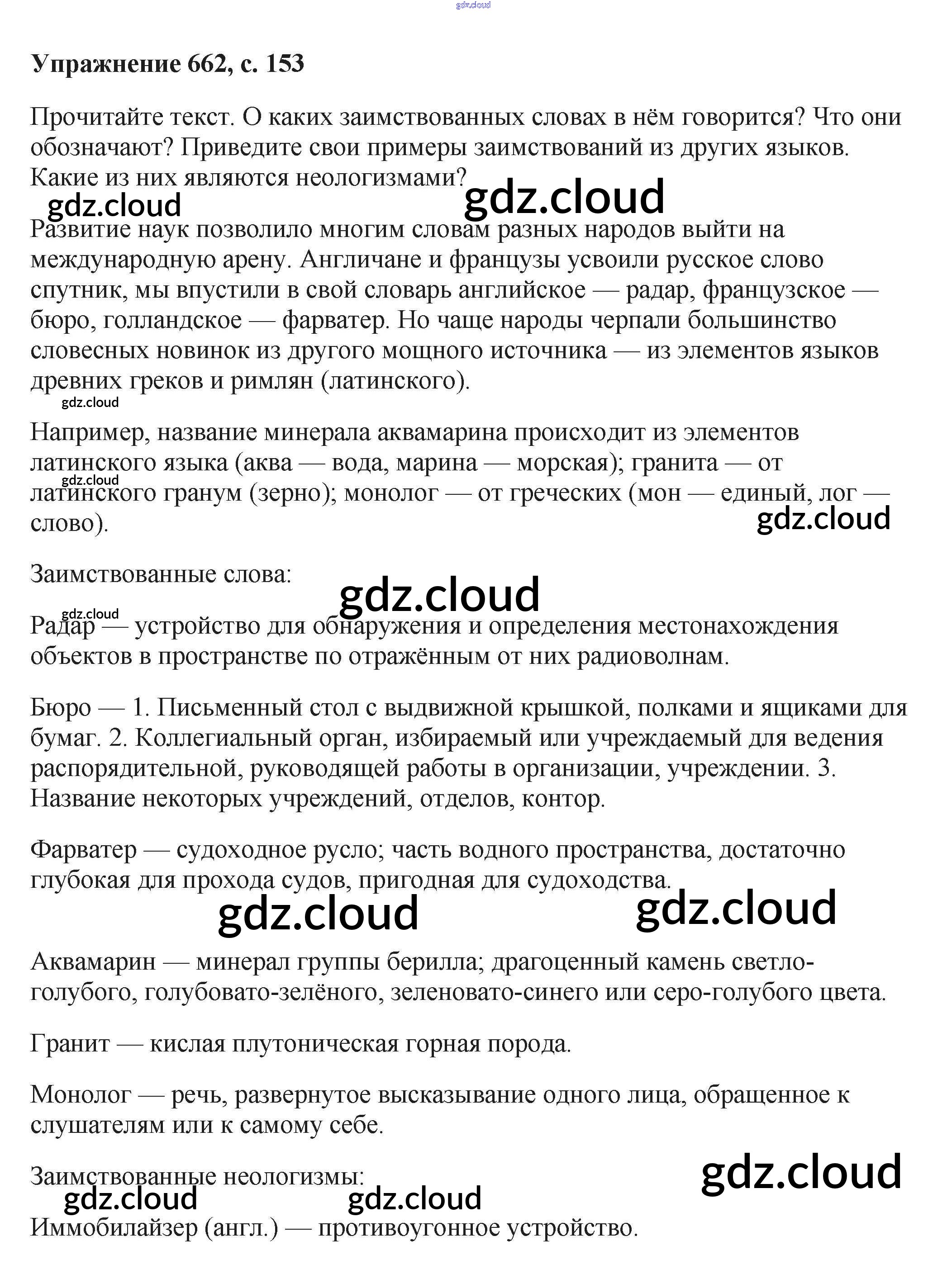 Ответ на задание 662 Учебник Русский язык за 6 (шестой) класс Баранов, Ладыженская, Тростенцова, Григорян, Кулибаба 2015, 2022 Часть 1, 2