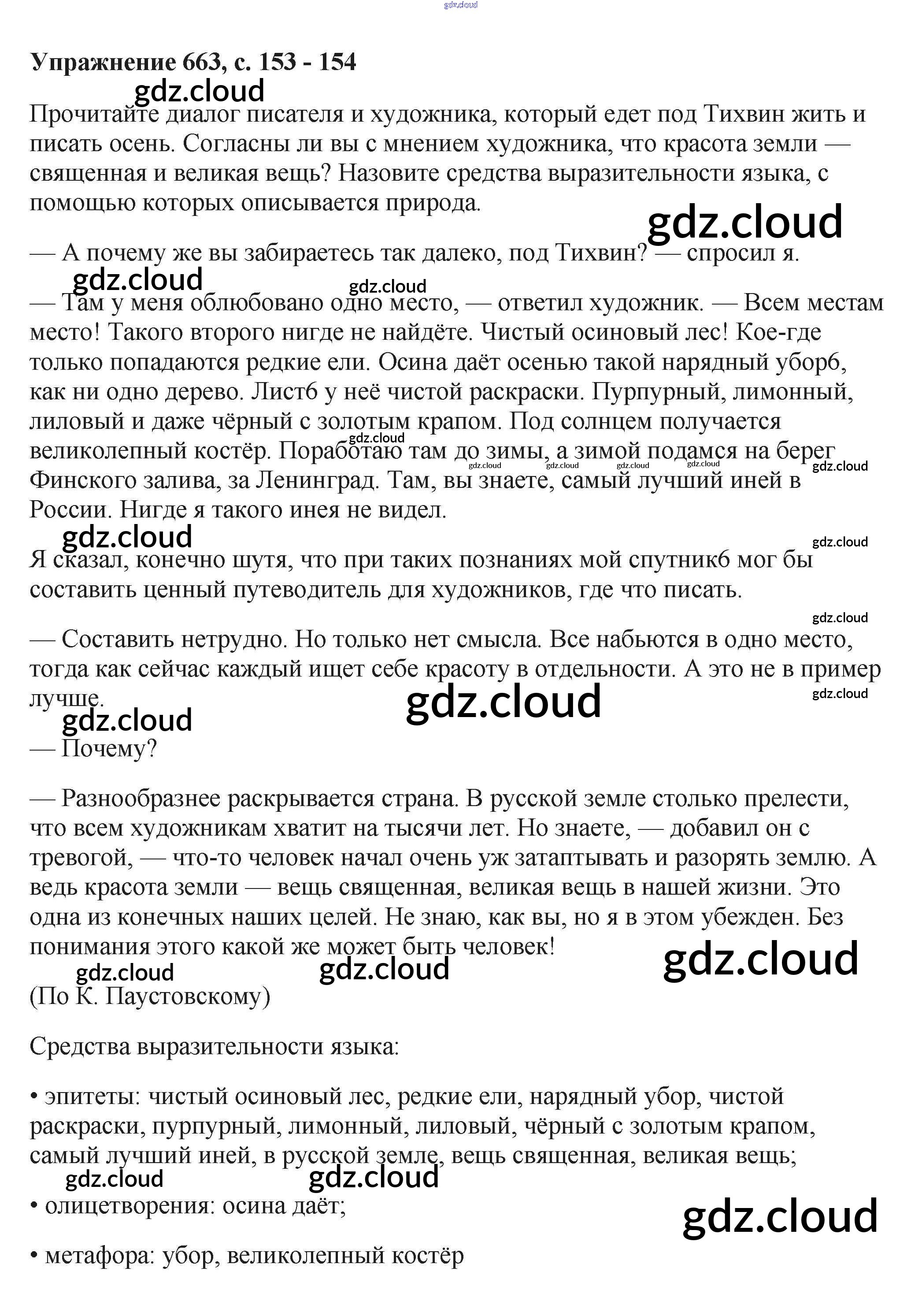 Ответ на задание 663 Учебник Русский язык за 6 (шестой) класс Баранов, Ладыженская, Тростенцова, Григорян, Кулибаба 2015, 2022 Часть 1, 2