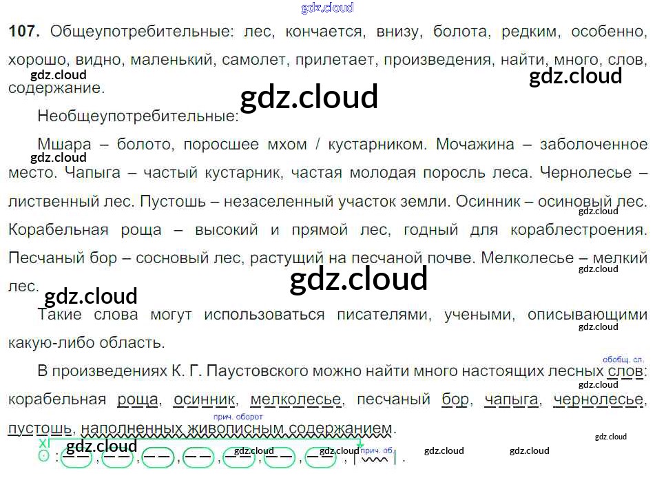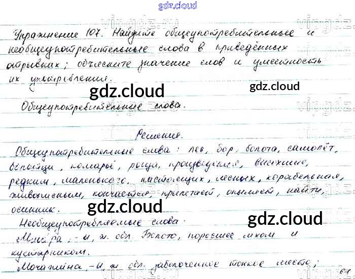 Ответ на задание 107 Учебник Русский язык за 6 (шестой) класс Баранов, Ладыженская, Тростенцова, Григорян, Кулибаба 2015, 2022 Часть 1, 2