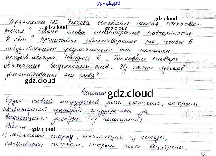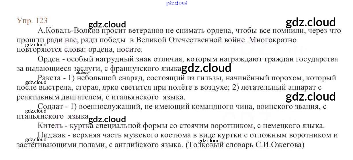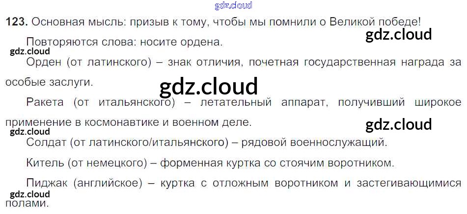 Ответ на задание 123 Учебник Русский язык за 6 (шестой) класс Баранов, Ладыженская, Тростенцова, Григорян, Кулибаба 2015, 2022 Часть 1, 2