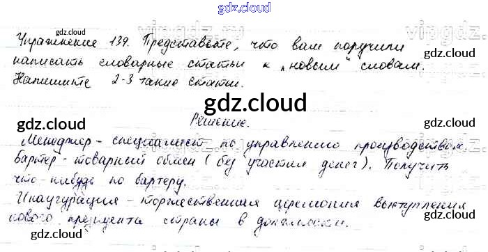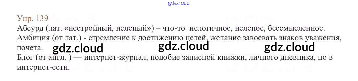 Ответ на задание 139 Учебник Русский язык за 6 (шестой) класс Баранов, Ладыженская, Тростенцова, Григорян, Кулибаба 2015, 2022 Часть 1, 2