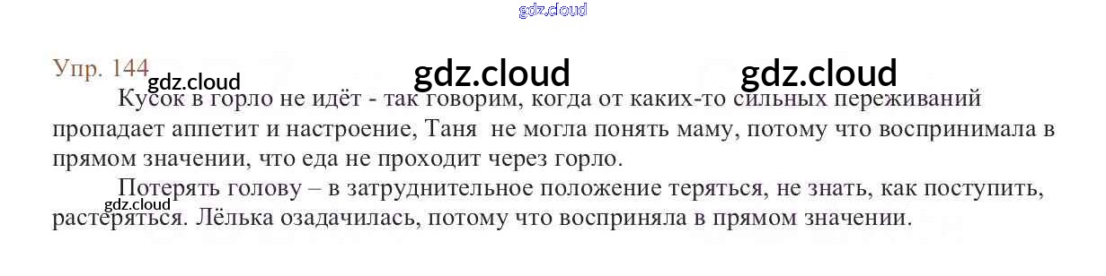 Ответ на задание 144 Учебник Русский язык за 6 (шестой) класс Баранов, Ладыженская, Тростенцова, Григорян, Кулибаба 2015, 2022 Часть 1, 2