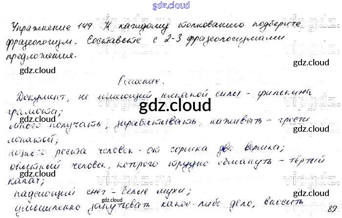 Ответ на задание 149 Учебник Русский язык за 6 (шестой) класс Баранов, Ладыженская, Тростенцова, Григорян, Кулибаба 2015, 2022 Часть 1, 2