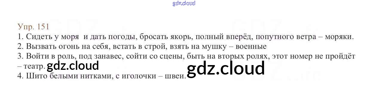 Ответ на задание 151 Учебник Русский язык за 6 (шестой) класс Баранов, Ладыженская, Тростенцова, Григорян, Кулибаба 2015, 2022 Часть 1, 2