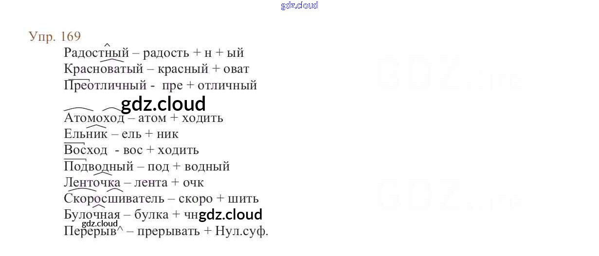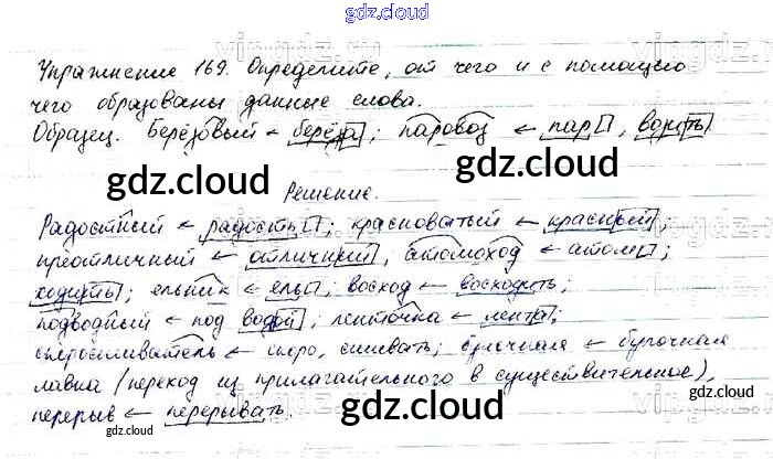 Ответ на задание 169 Учебник Русский язык за 6 (шестой) класс Баранов, Ладыженская, Тростенцова, Григорян, Кулибаба 2015, 2022 Часть 1, 2