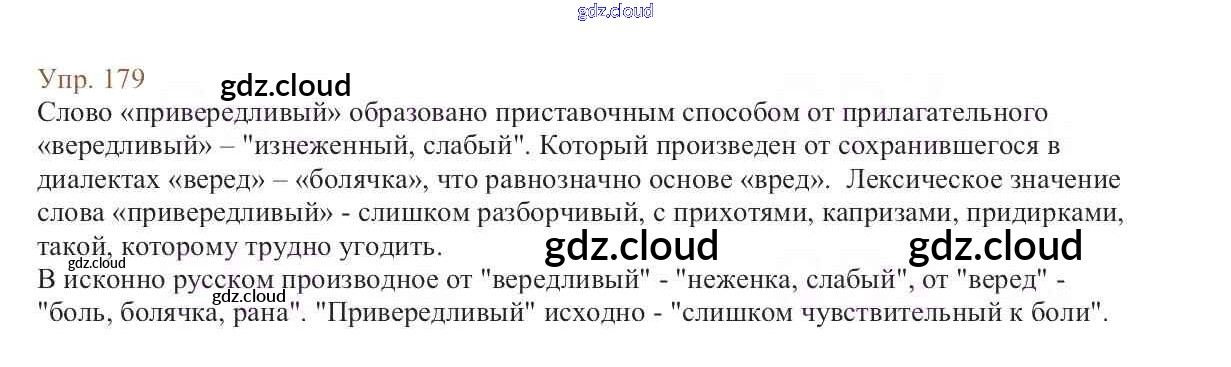 Ответ на задание 179 Учебник Русский язык за 6 (шестой) класс Баранов, Ладыженская, Тростенцова, Григорян, Кулибаба 2015, 2022 Часть 1, 2