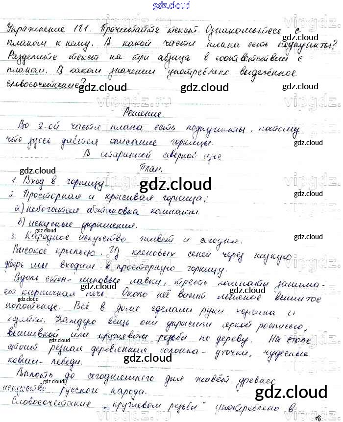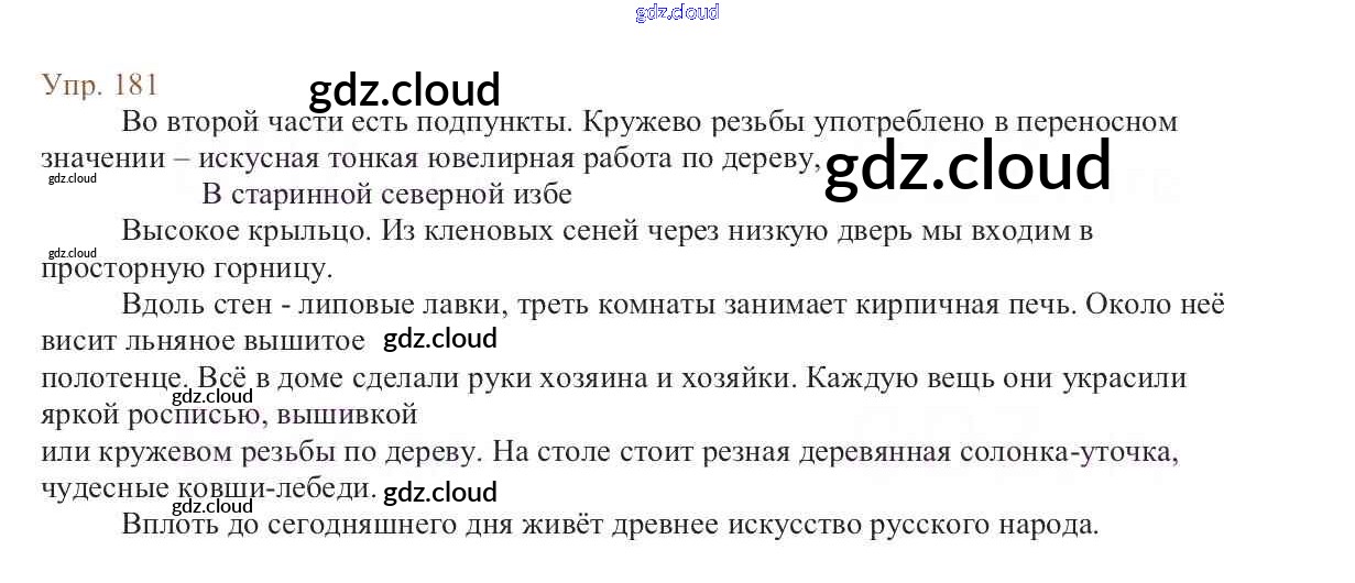 Ответ на задание 181 Учебник Русский язык за 6 (шестой) класс Баранов, Ладыженская, Тростенцова, Григорян, Кулибаба 2015, 2022 Часть 1, 2