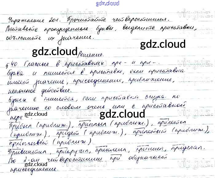 Ответ на задание 201 Учебник Русский язык за 6 (шестой) класс Баранов, Ладыженская, Тростенцова, Григорян, Кулибаба 2015, 2022 Часть 1, 2