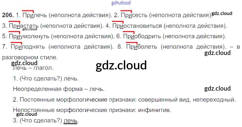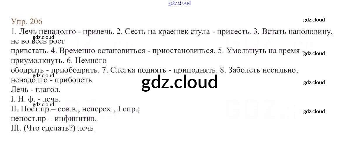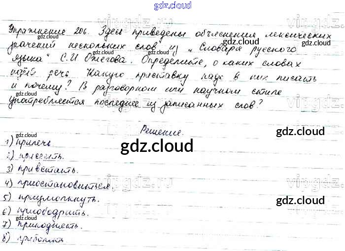Ответ на задание 206 Учебник Русский язык за 6 (шестой) класс Баранов, Ладыженская, Тростенцова, Григорян, Кулибаба 2015, 2022 Часть 1, 2