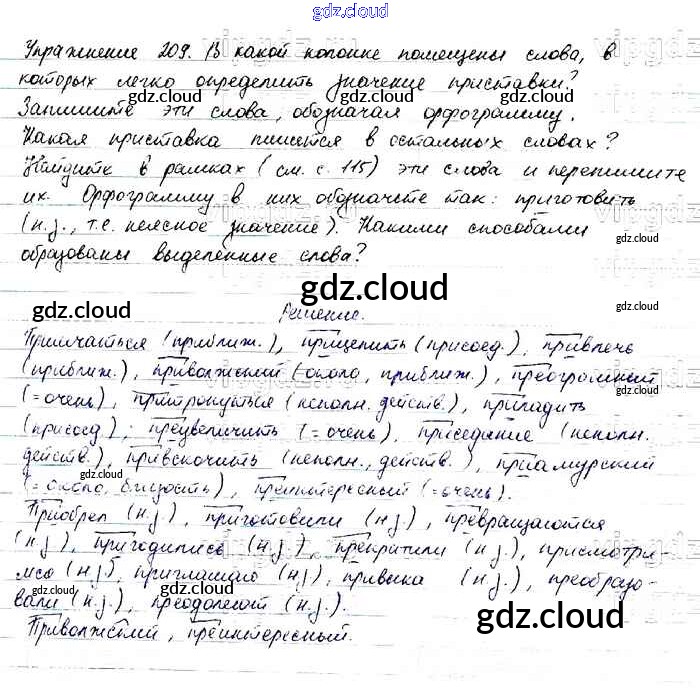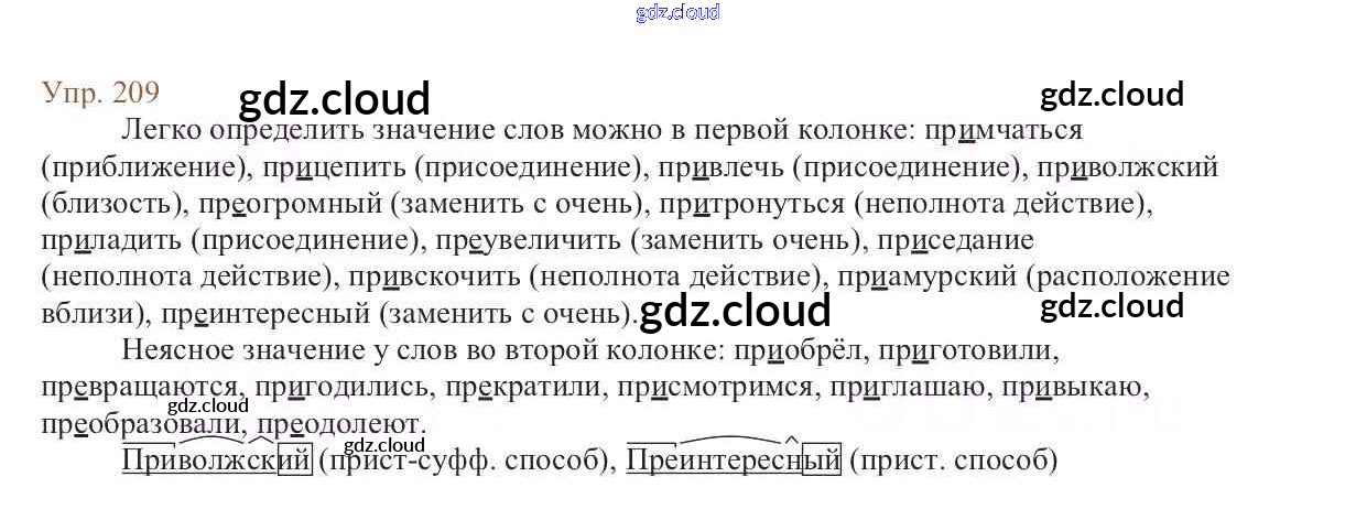Ответ на задание 209 Учебник Русский язык за 6 (шестой) класс Баранов, Ладыженская, Тростенцова, Григорян, Кулибаба 2015, 2022 Часть 1, 2
