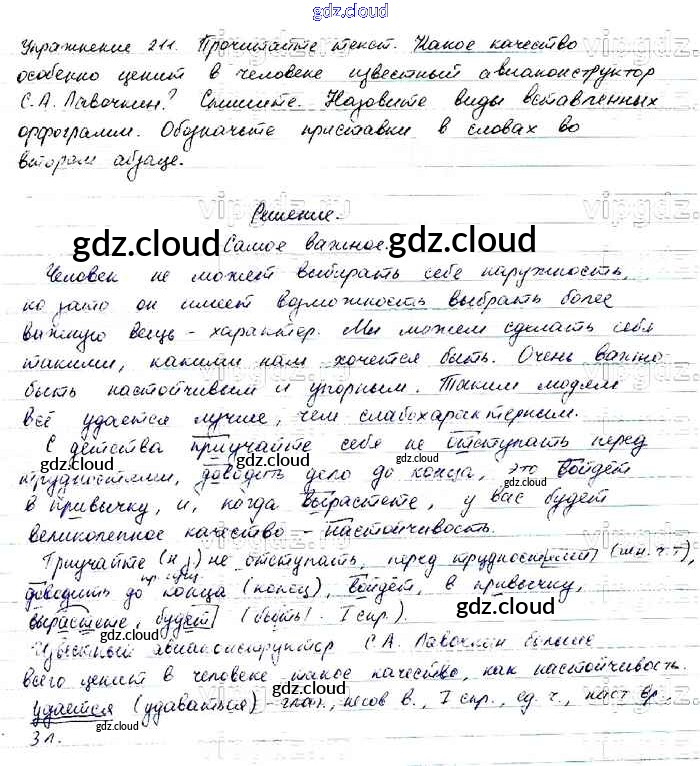 Ответ на задание 211 Учебник Русский язык за 6 (шестой) класс Баранов, Ладыженская, Тростенцова, Григорян, Кулибаба 2015, 2022 Часть 1, 2