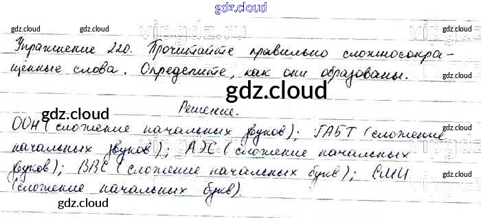 Ответ на задание 220 Учебник Русский язык за 6 (шестой) класс Баранов, Ладыженская, Тростенцова, Григорян, Кулибаба 2015, 2022 Часть 1, 2