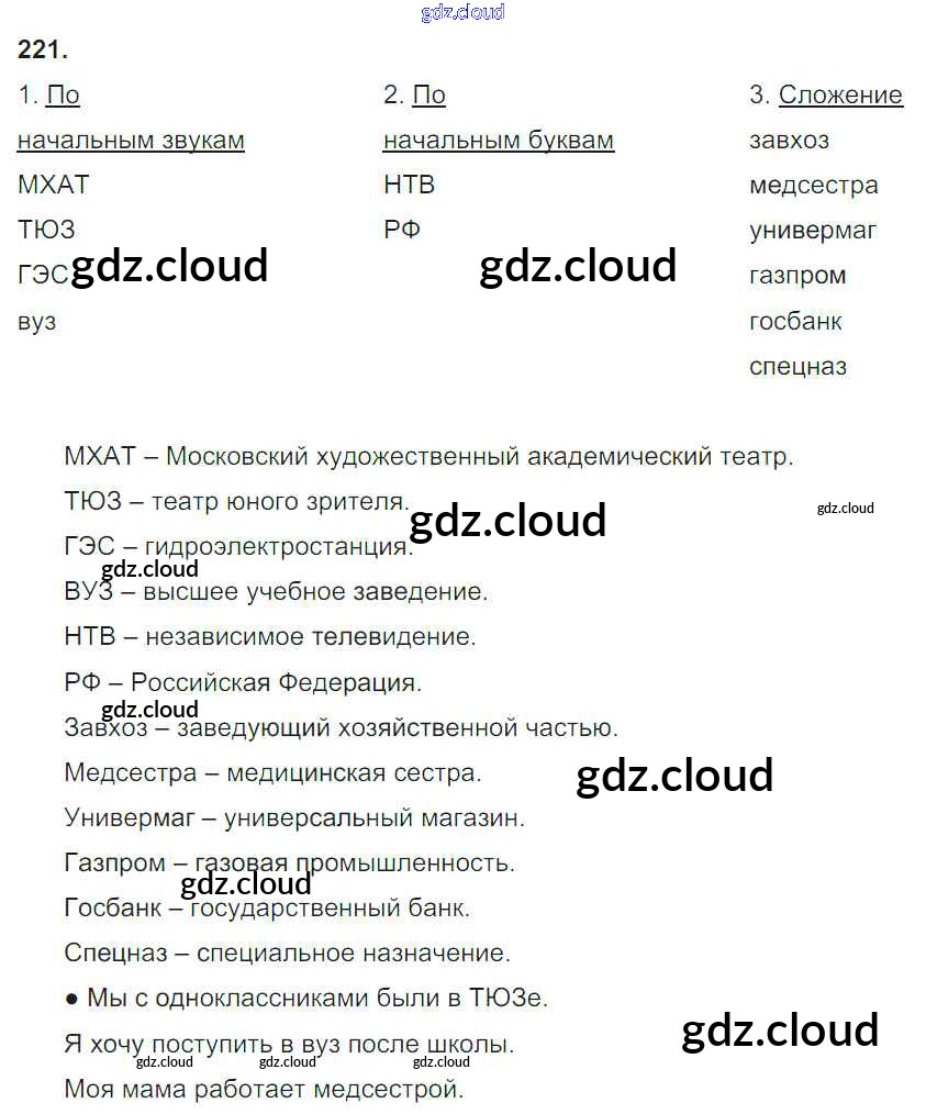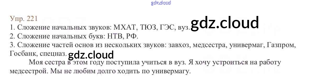 Ответ на задание 221 Учебник Русский язык за 6 (шестой) класс Баранов, Ладыженская, Тростенцова, Григорян, Кулибаба 2015, 2022 Часть 1, 2