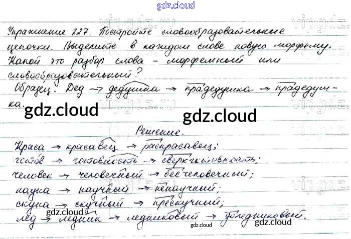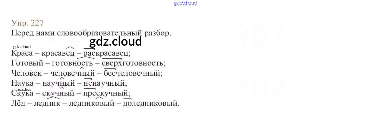 Ответ на задание 227 Учебник Русский язык за 6 (шестой) класс Баранов, Ладыженская, Тростенцова, Григорян, Кулибаба 2015, 2022 Часть 1, 2